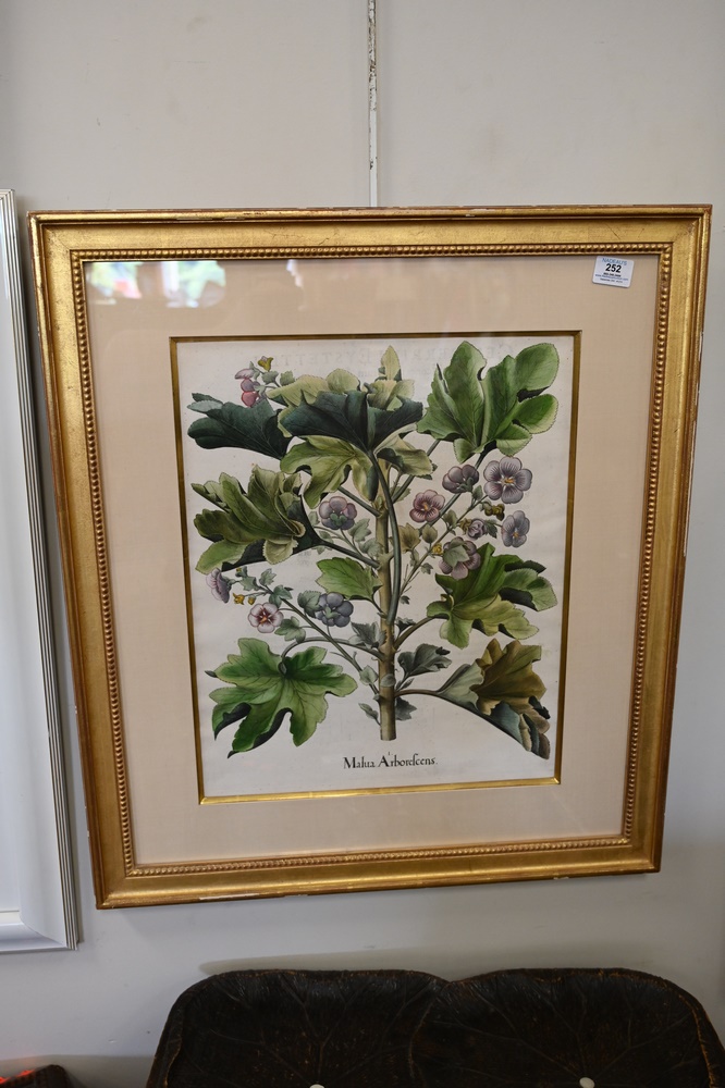 Lot 252: After Basilius Besler (German, 1561 – 1629), Malau Arborescens, circa 1613, engraving hand coloring on paper, sight size 19″ x 15 1/2″.