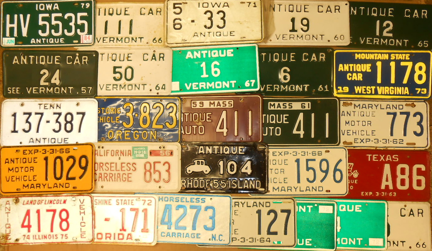 Forty seven antique auto plates from various states
