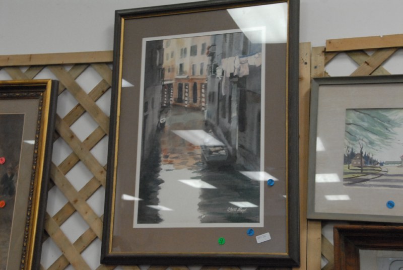 Group of 4 paintings, 3 watercolors, 1 oil.