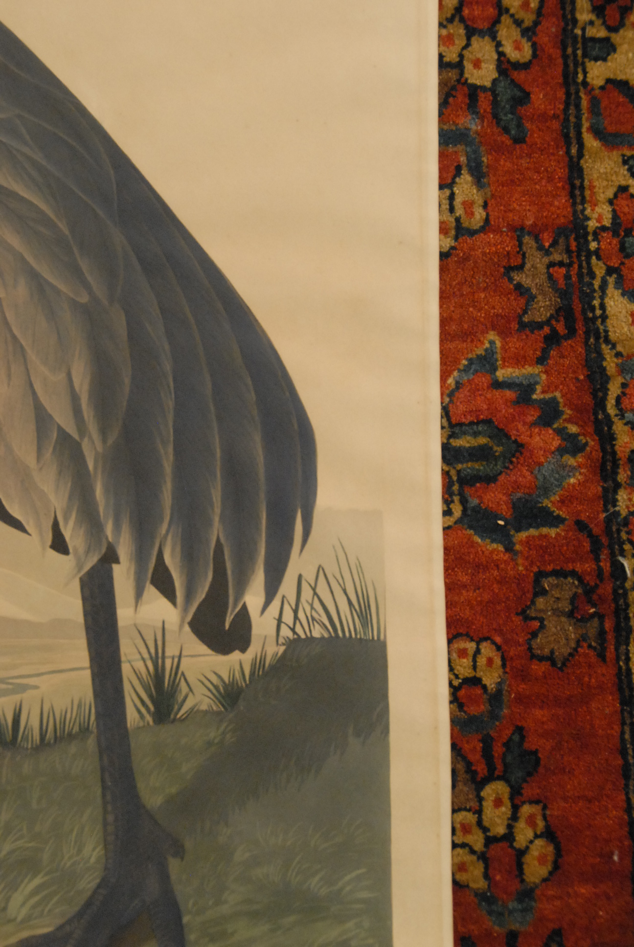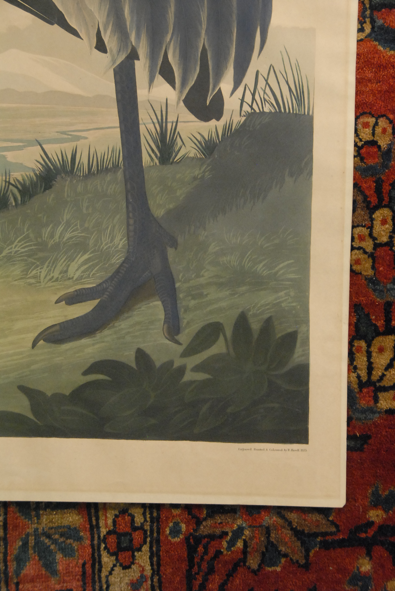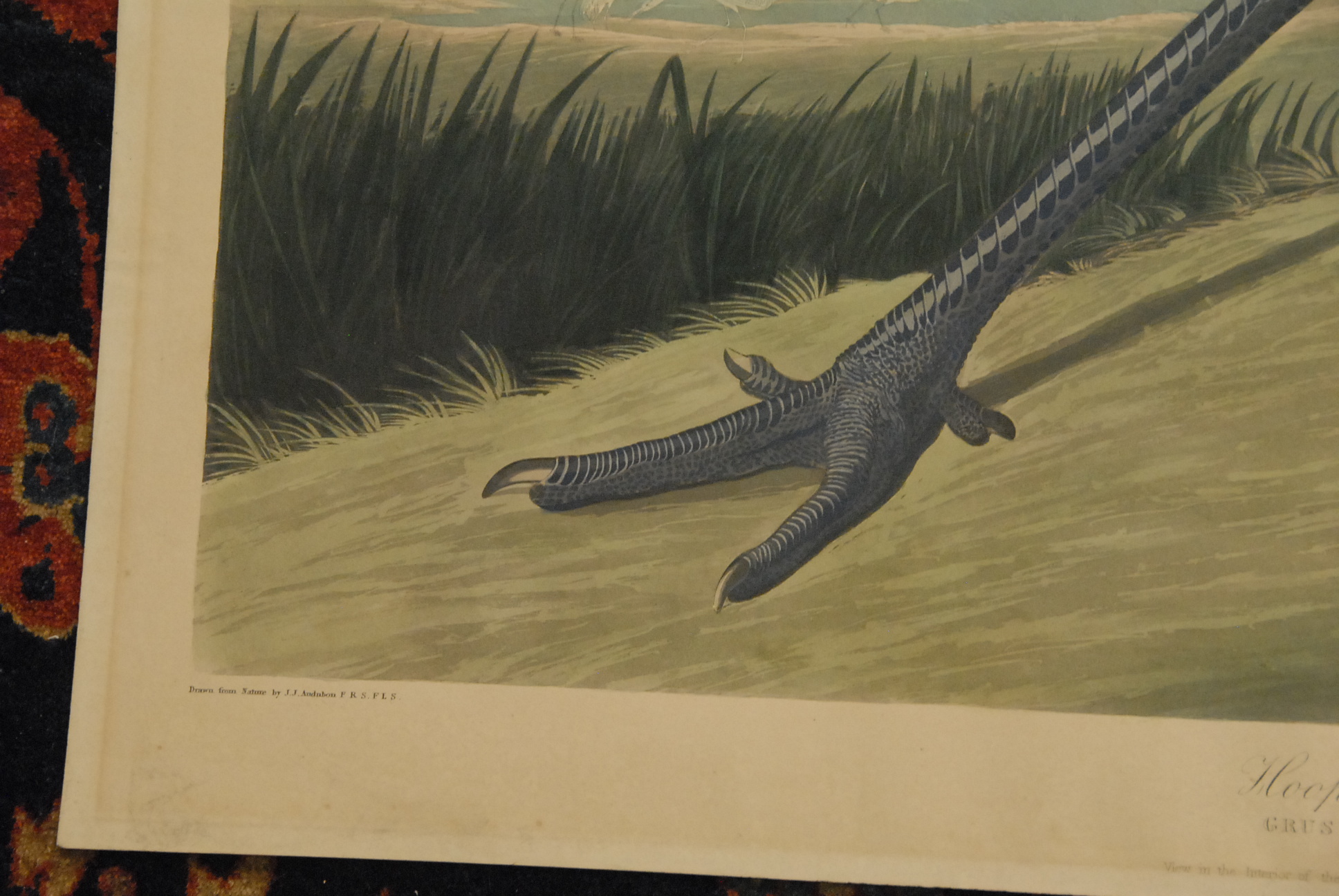 John James Audubon 1785-1851 HOOPING CRANE Grus Americana young, view in the interior of the Floridas with sand hills in distance Plate CCLXI No. 53 hand colored engraving marked lower left: Drawn from Nature by J. J. Audubon F.R.S. F.L.S. marked lower right: Engraved, printed and coloured by R. Havell 1835 J. Whatman 1835 watermark & top right Kennedy Gallery New York label on verso #46961 taped to matting on back of top 38 3/16 x 25 1/8