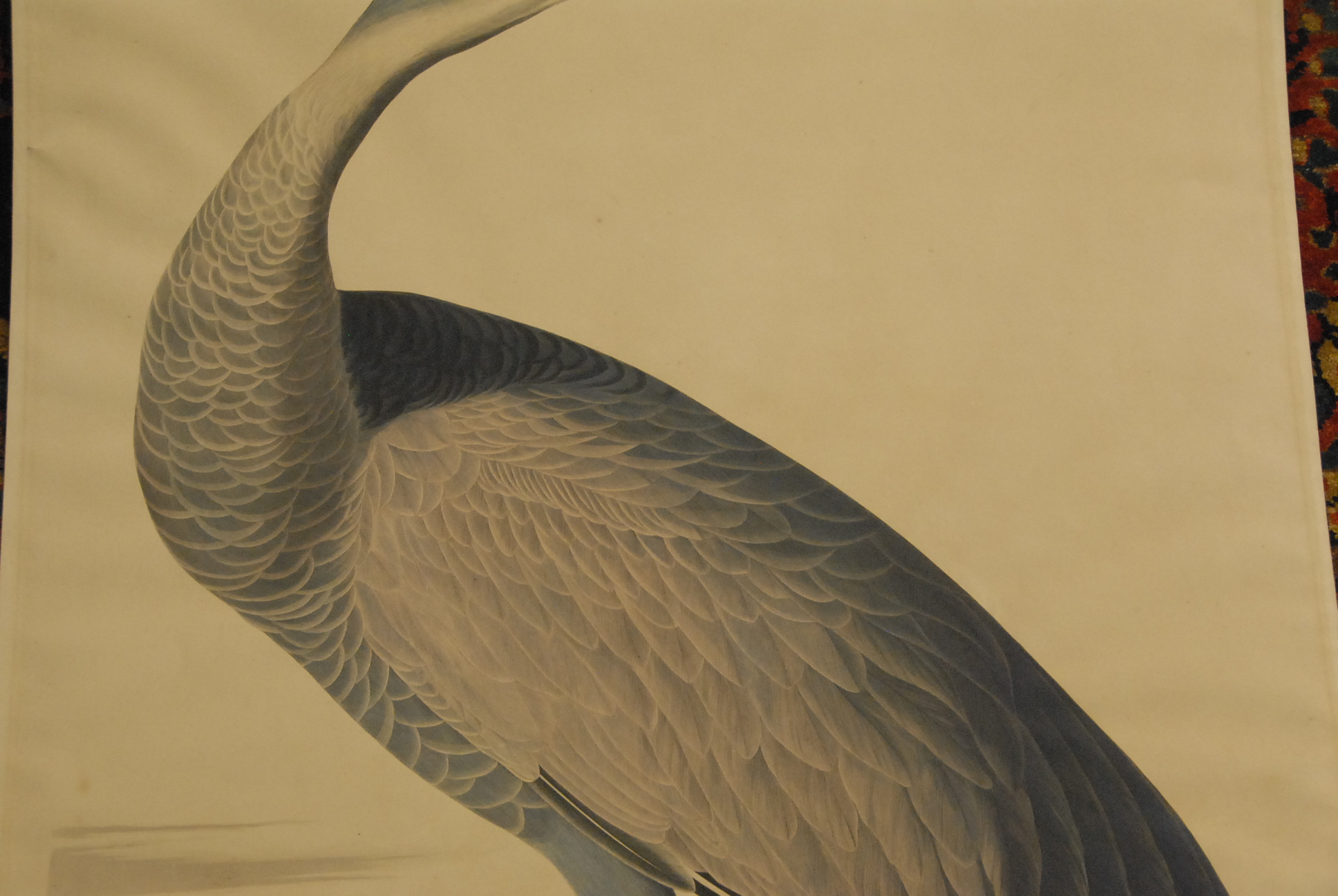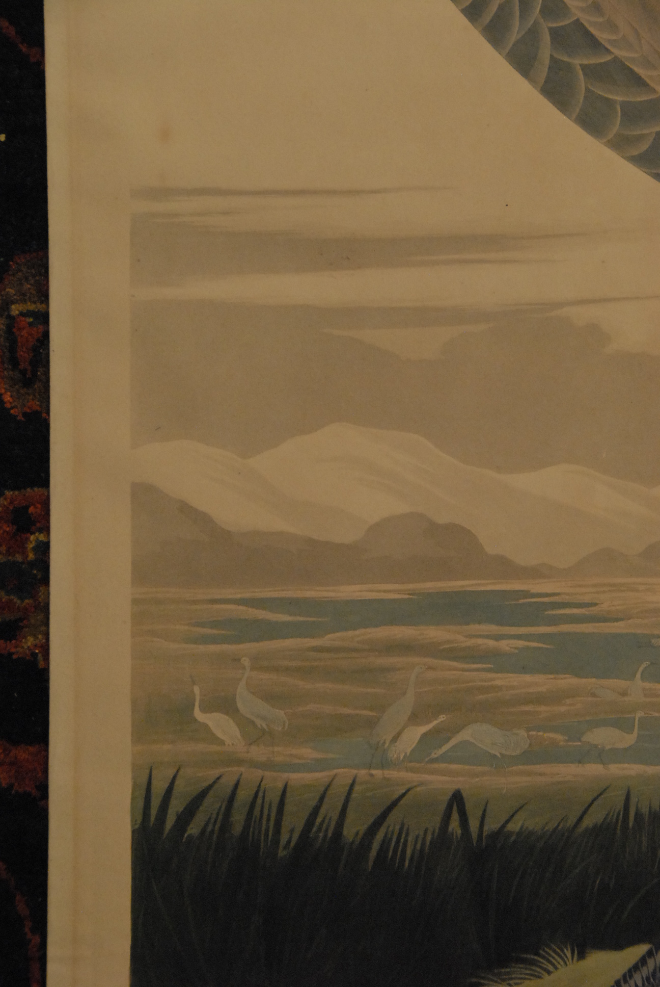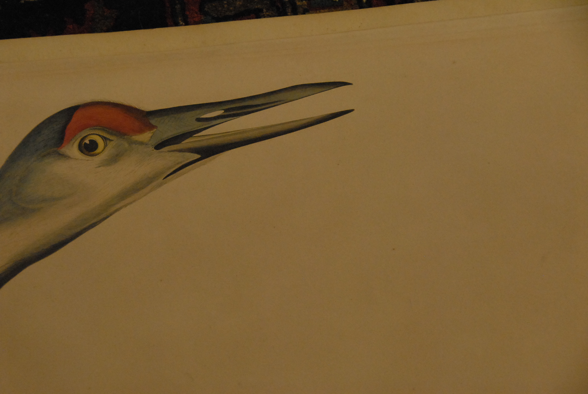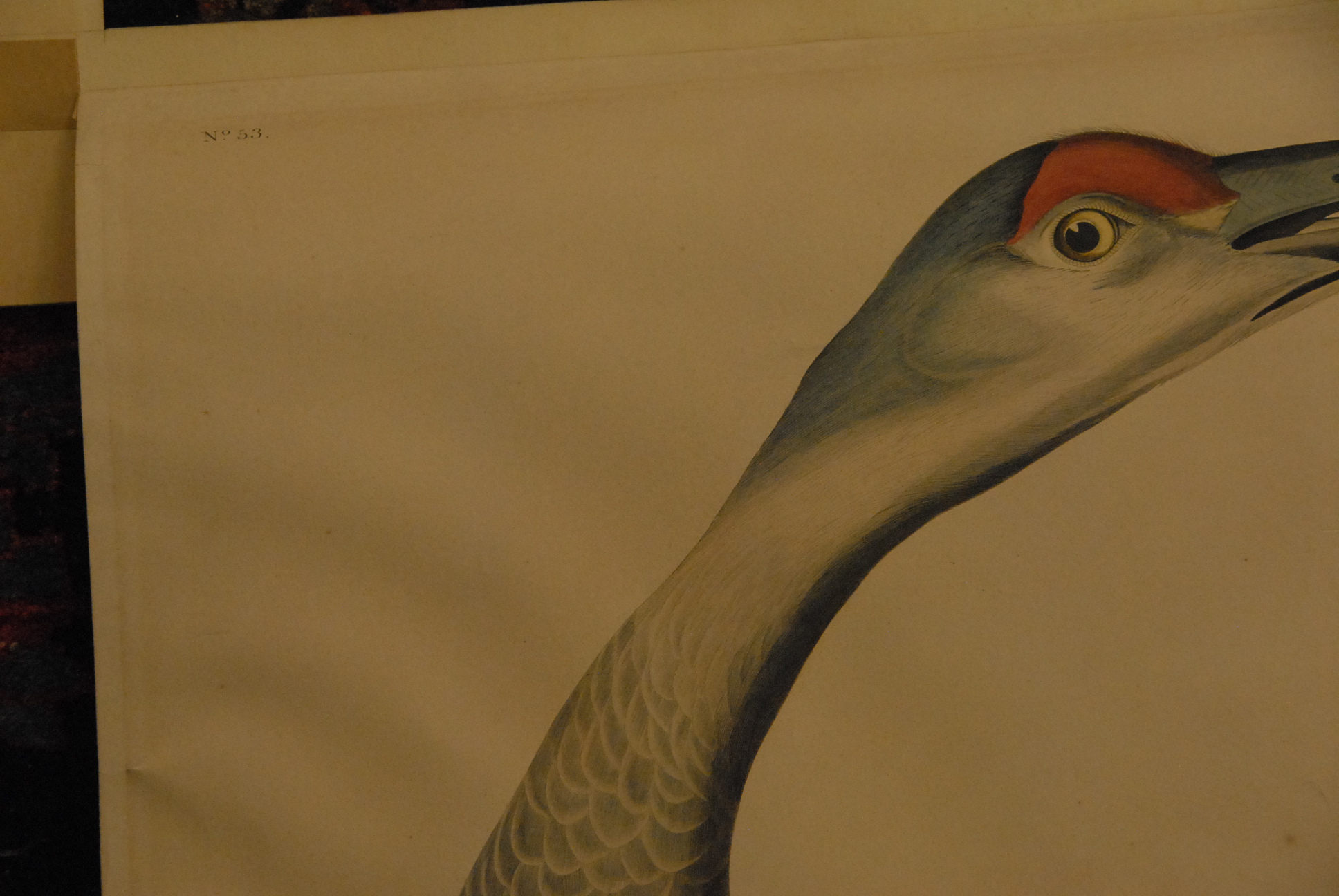 John James Audubon 1785-1851 HOOPING CRANE Grus Americana young, view in the interior of the Floridas with sand hills in distance Plate CCLXI No. 53 hand colored engraving marked lower left: Drawn from Nature by J. J. Audubon F.R.S. F.L.S. marked lower right: Engraved, printed and coloured by R. Havell 1835 J. Whatman 1835 watermark & top right Kennedy Gallery New York label on verso #46961 taped to matting on back of top 38 3/16 x 25 1/8