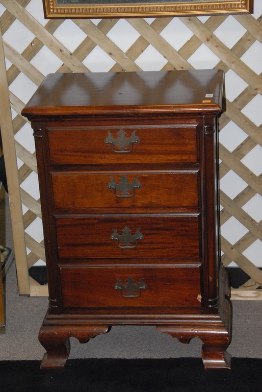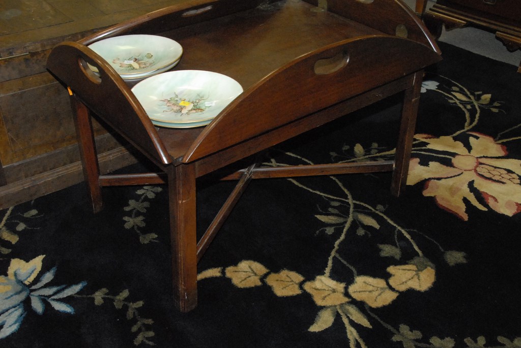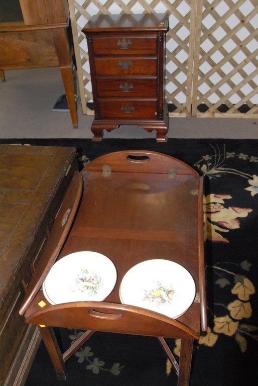 Mahogany four drawer night table and tray top coffee table.