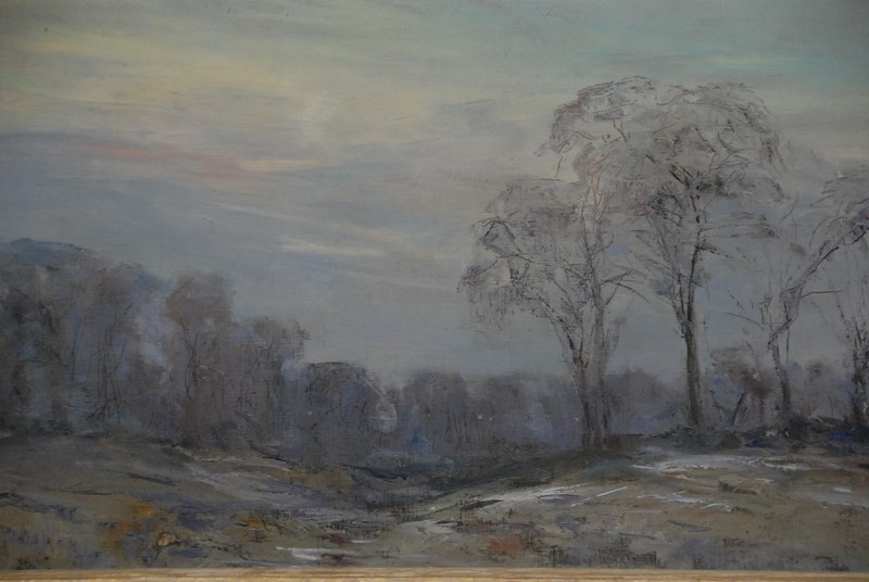 Oil on canvas winterscape, unsigned, 21 3/4 x 27 3/4.