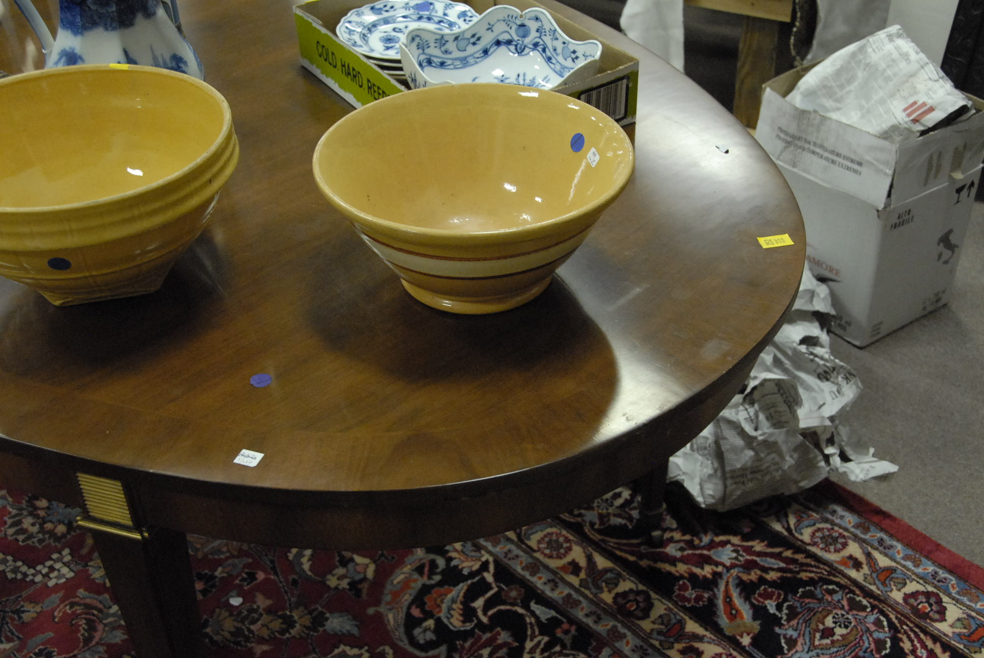 Oval inlaid dining table.