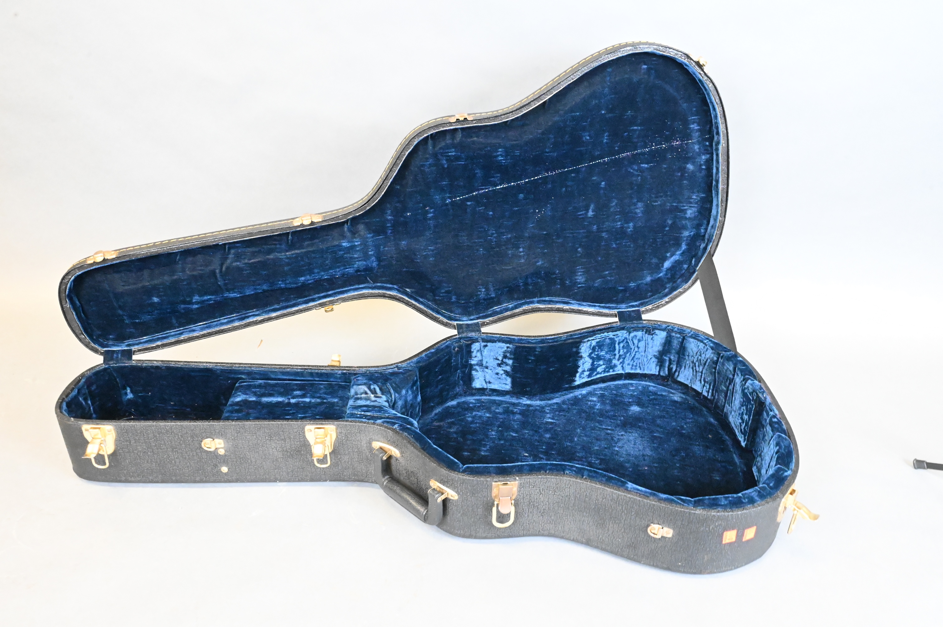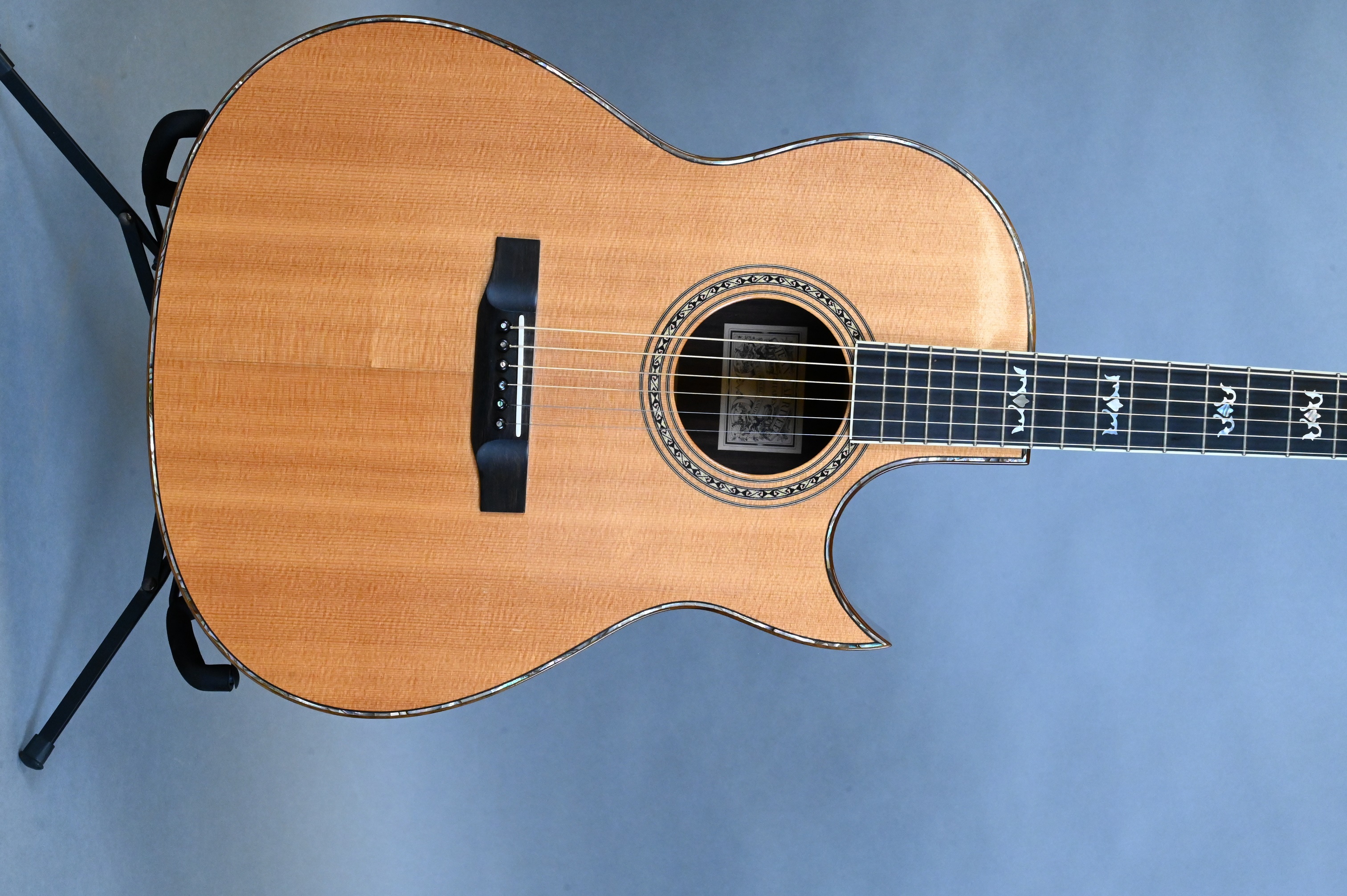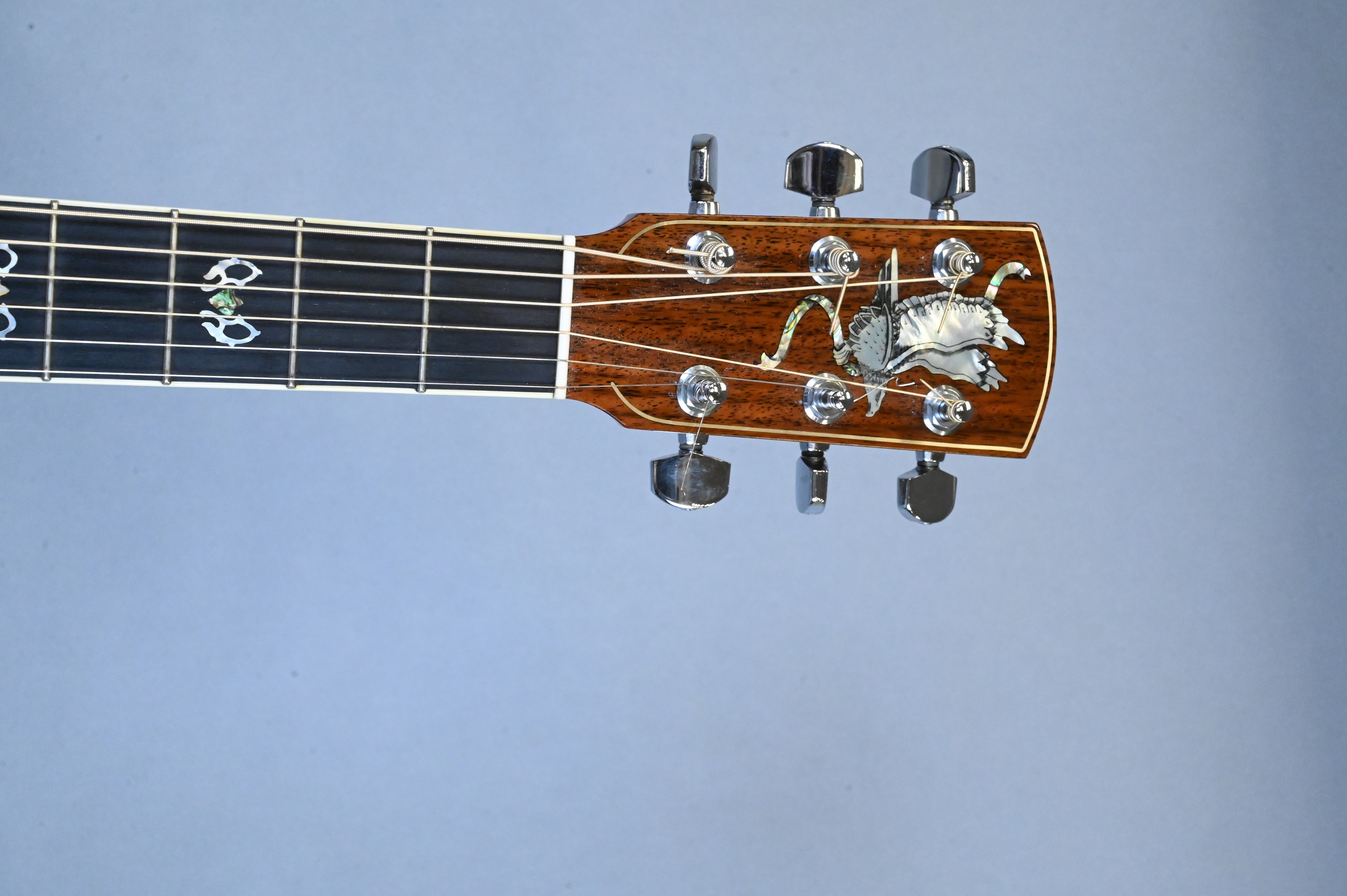 having mother of pearl inlay eagle on head, fingerboard, and rim of body, serial #12880, with original hard case