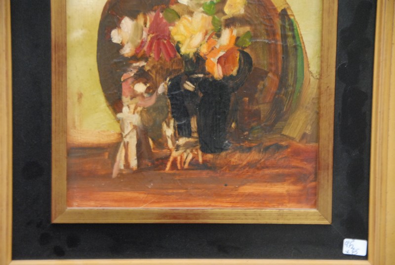 Attributed to Charles S. Chapman oil on board Still Life with Charger, unsigned, 9 1/2 x 8.