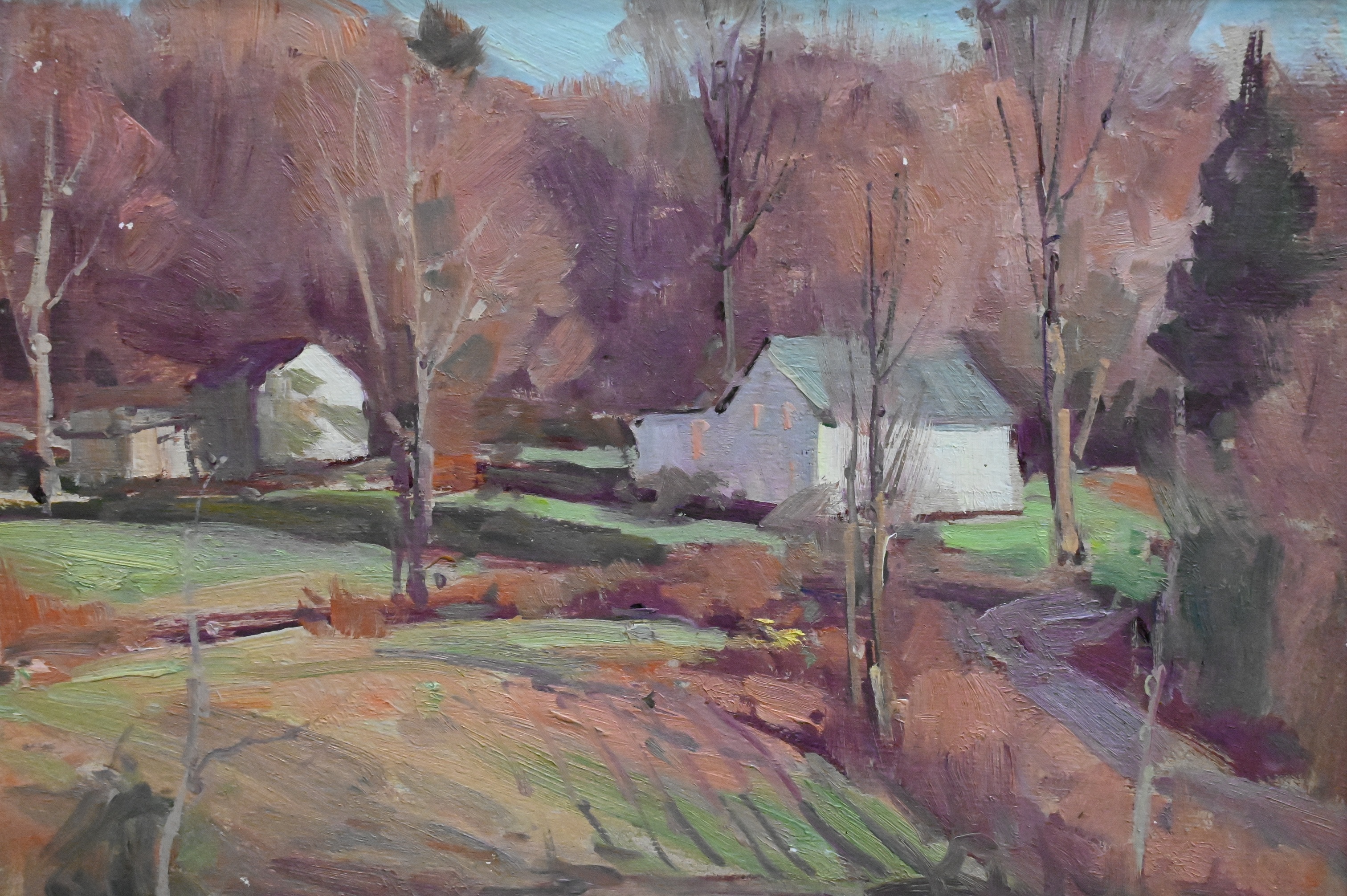 Early Spring Farm with Bare Trees