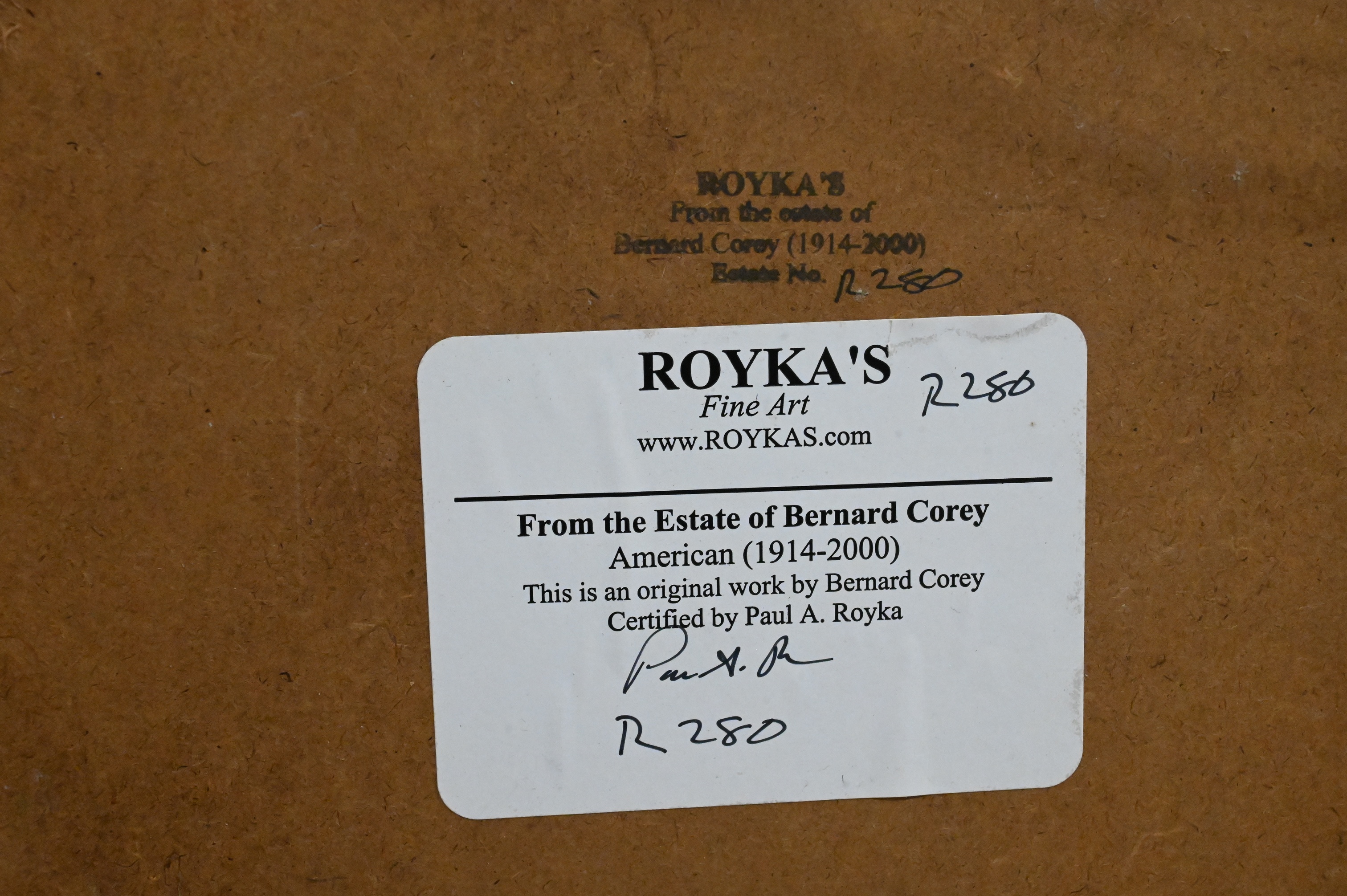 Provenance: Royka’s Fine Art, Massachusetts, from the Estate of Bernard Corey