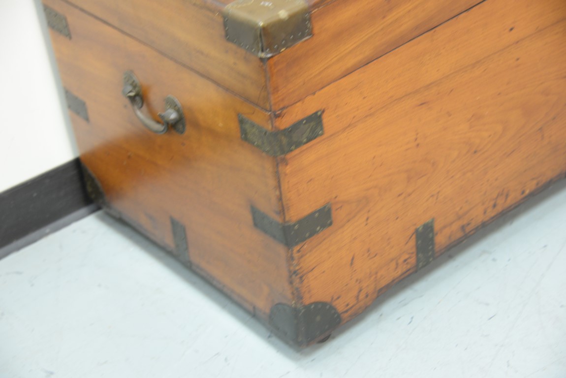 Camphorwood lift top chest with brass bindings, probably late 18th century to early 19th century. ht. 30 in. wd. 41 in. dp. 20 in.