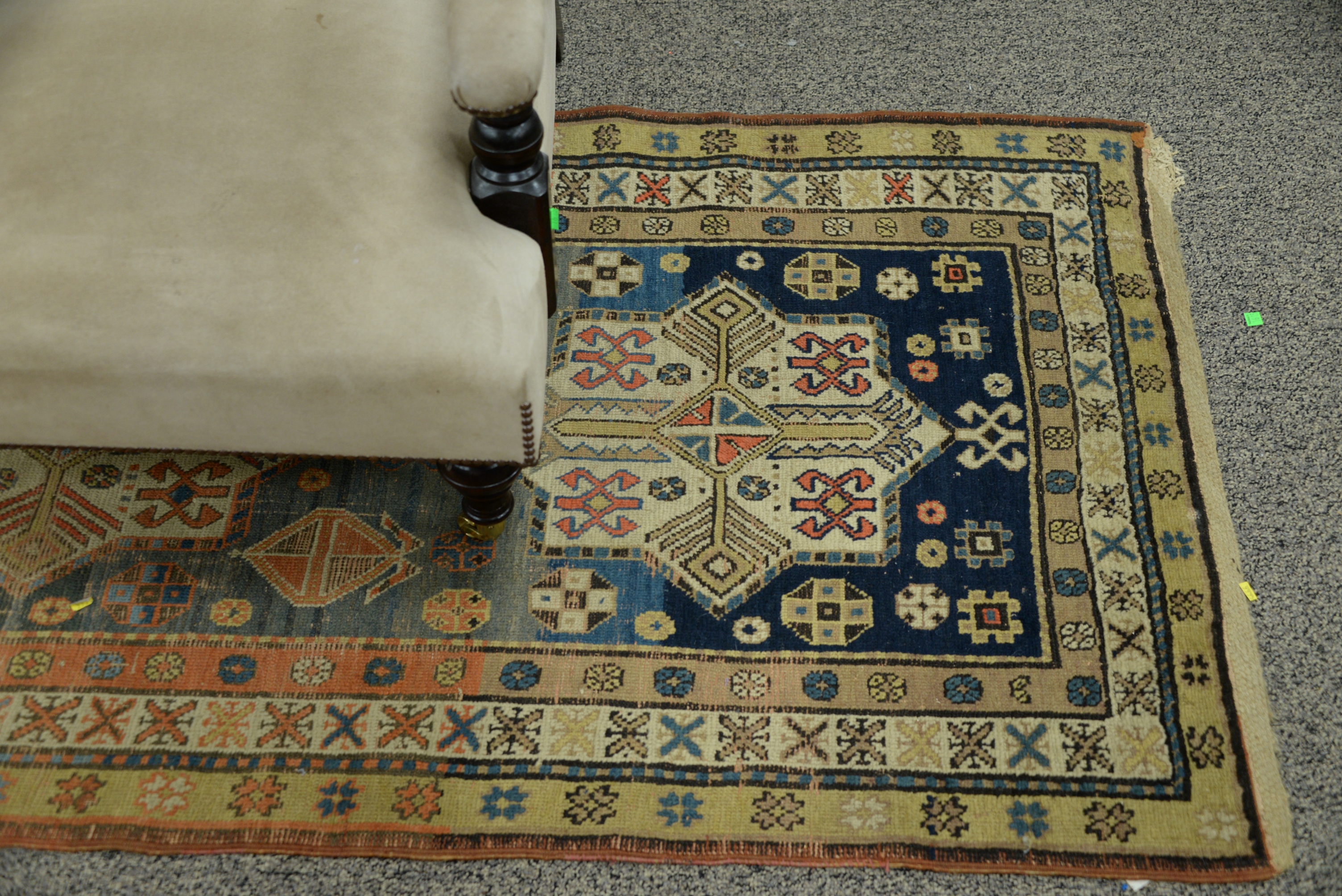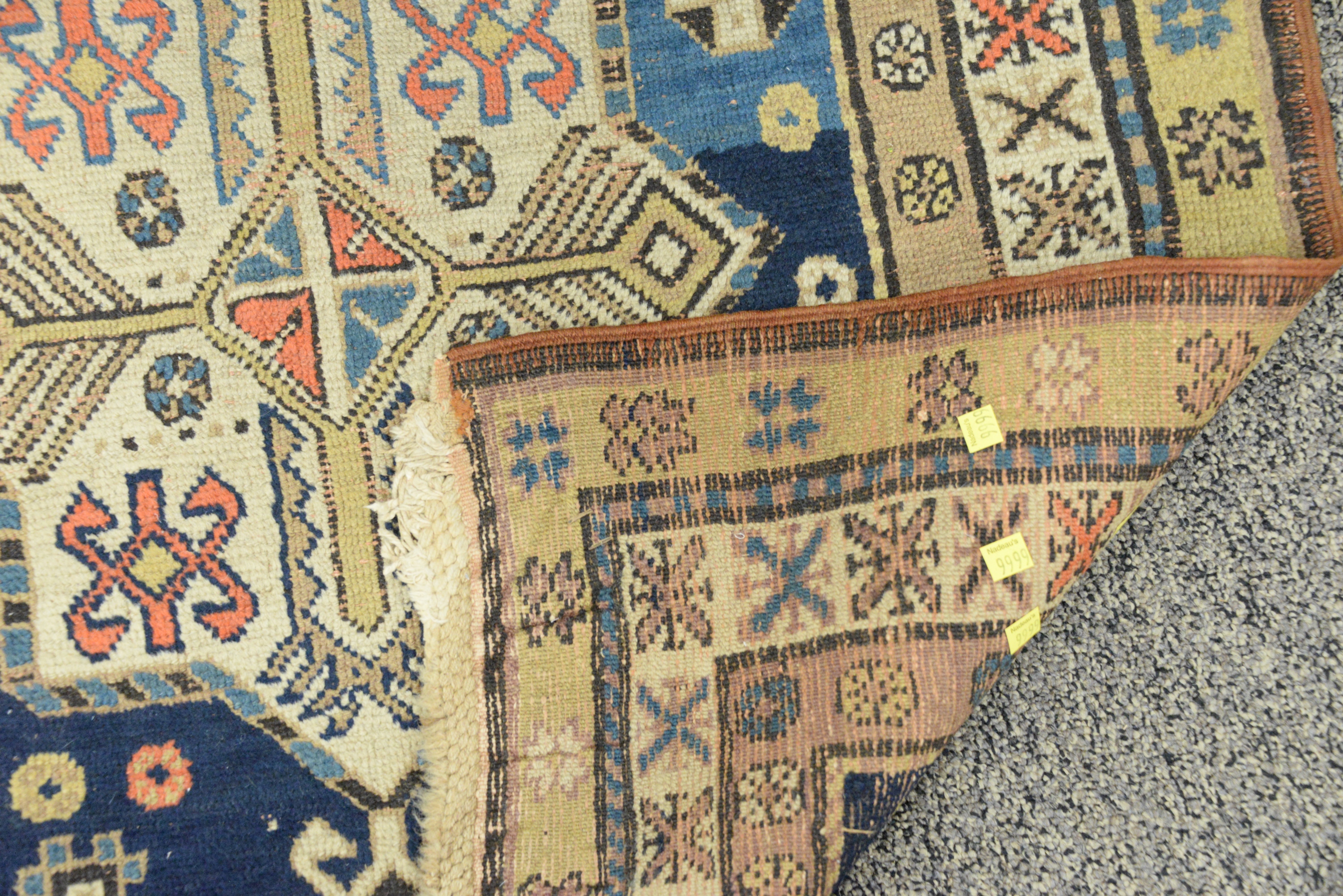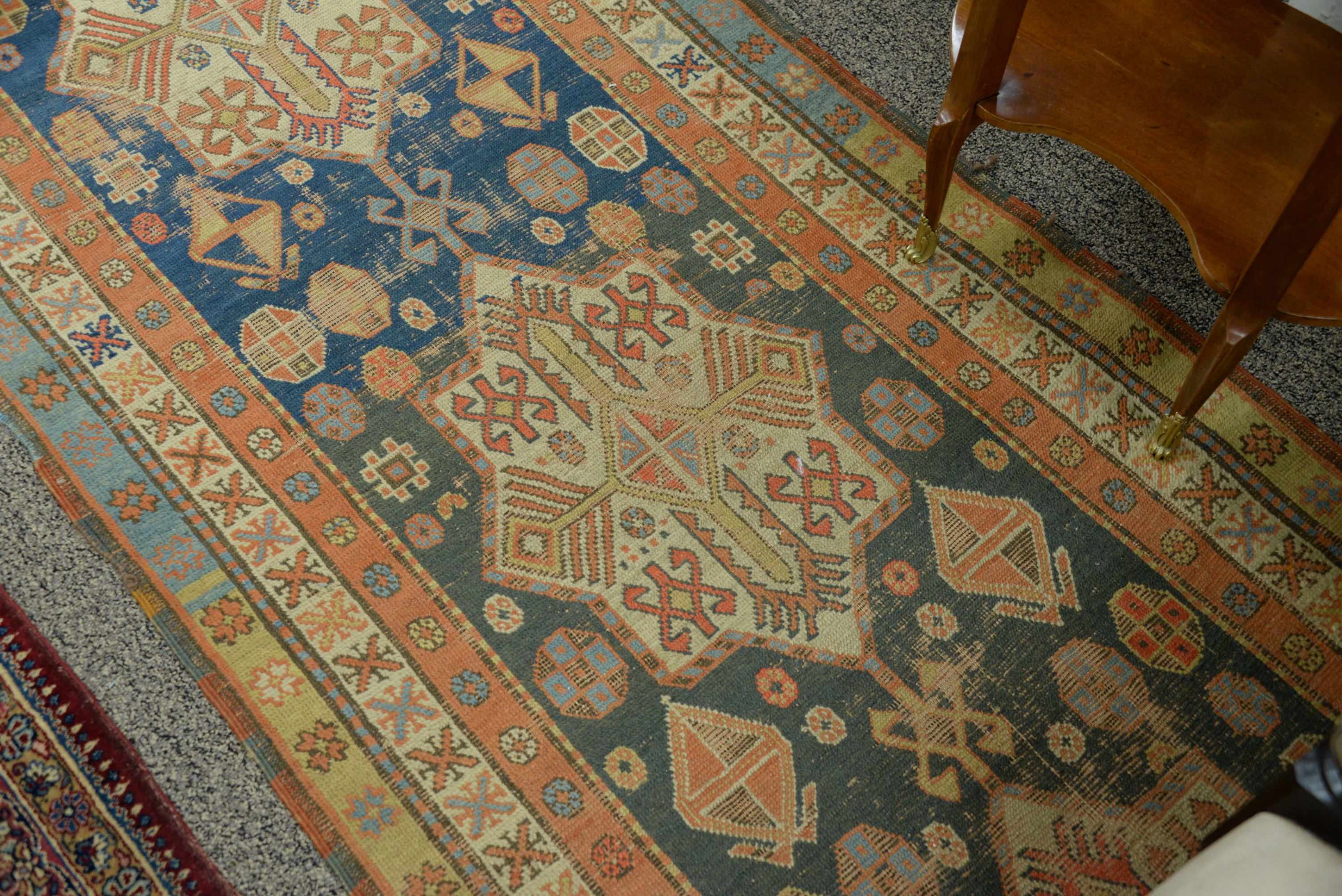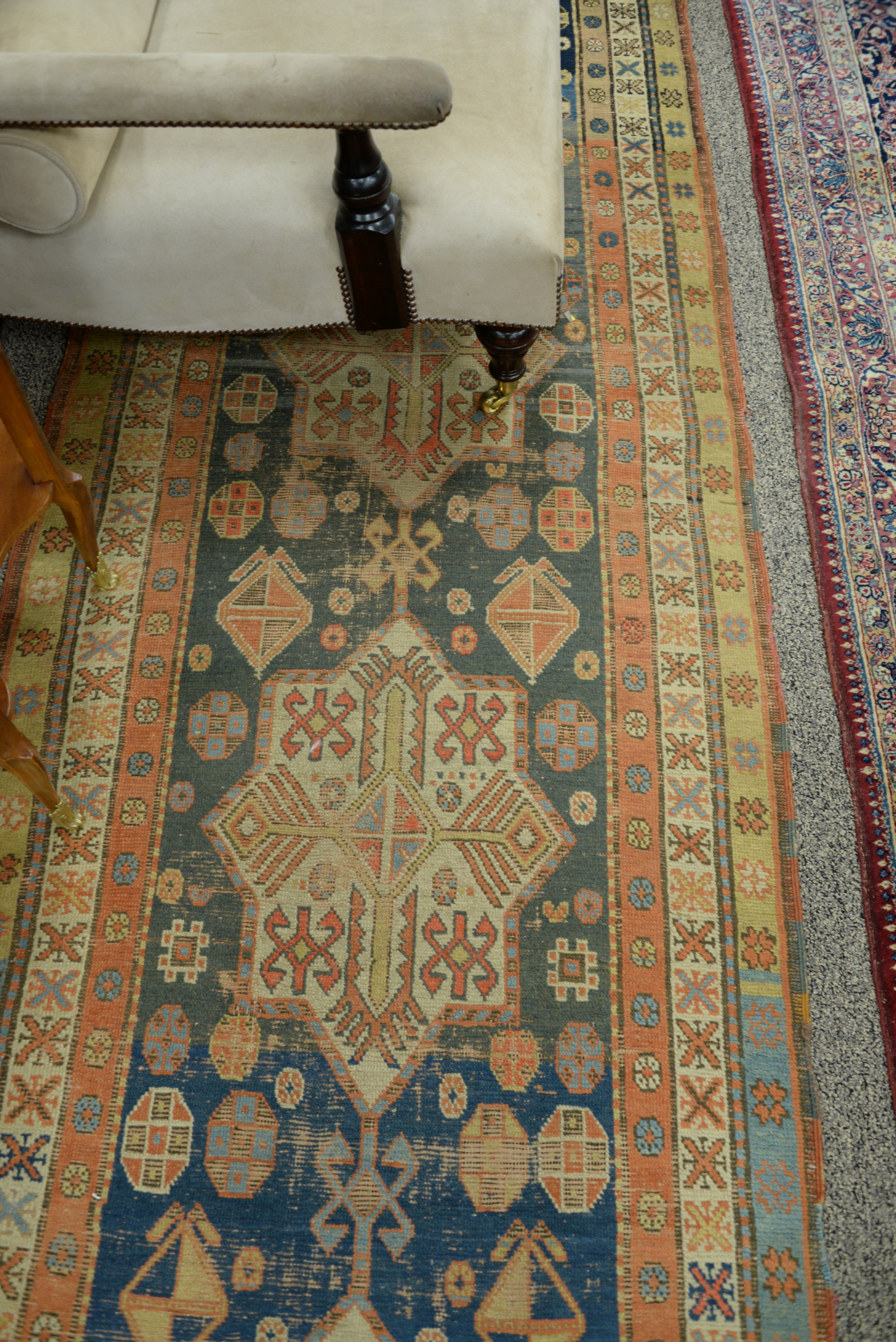 Caucasian Oriental Runner, some wear, 3′ 3″ x 11′ 4″.