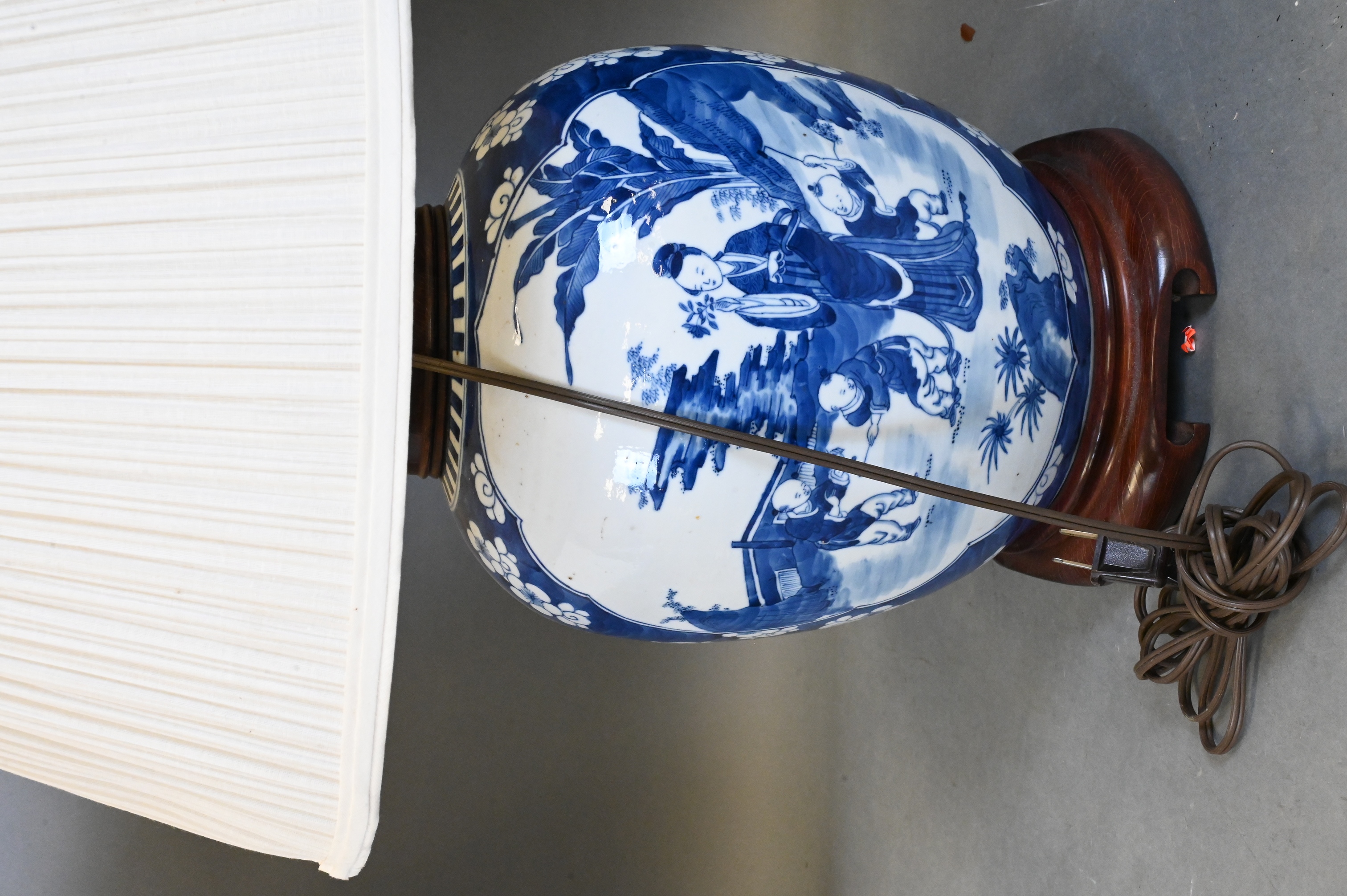 Lot 253: Chinese Blue and White Porcelain Vase Now Mounted as Lamp