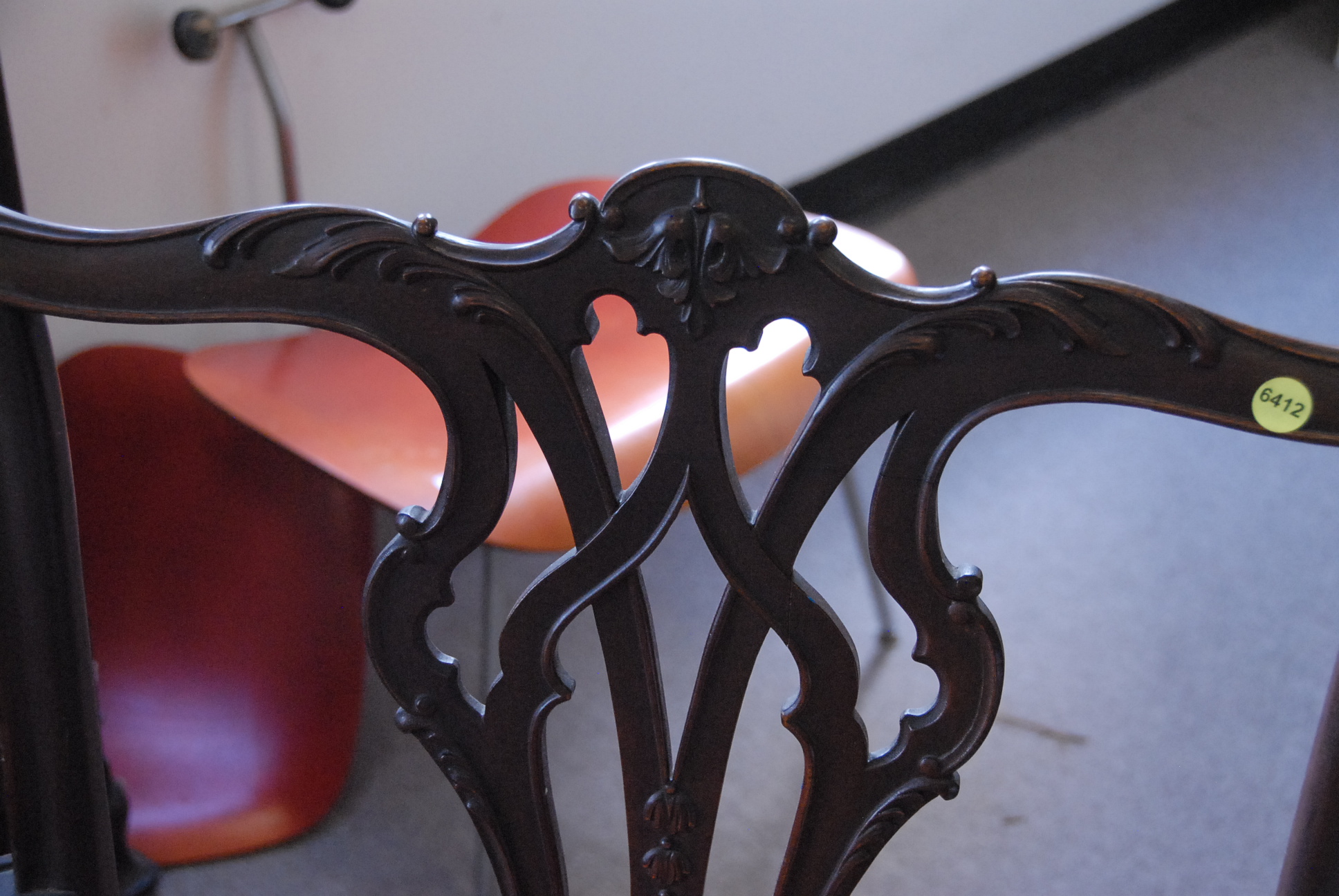 Custom mahogany Chippendale style armchair with hairy paw feet.