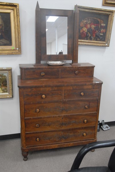 Empire mahogany chest and mirror.