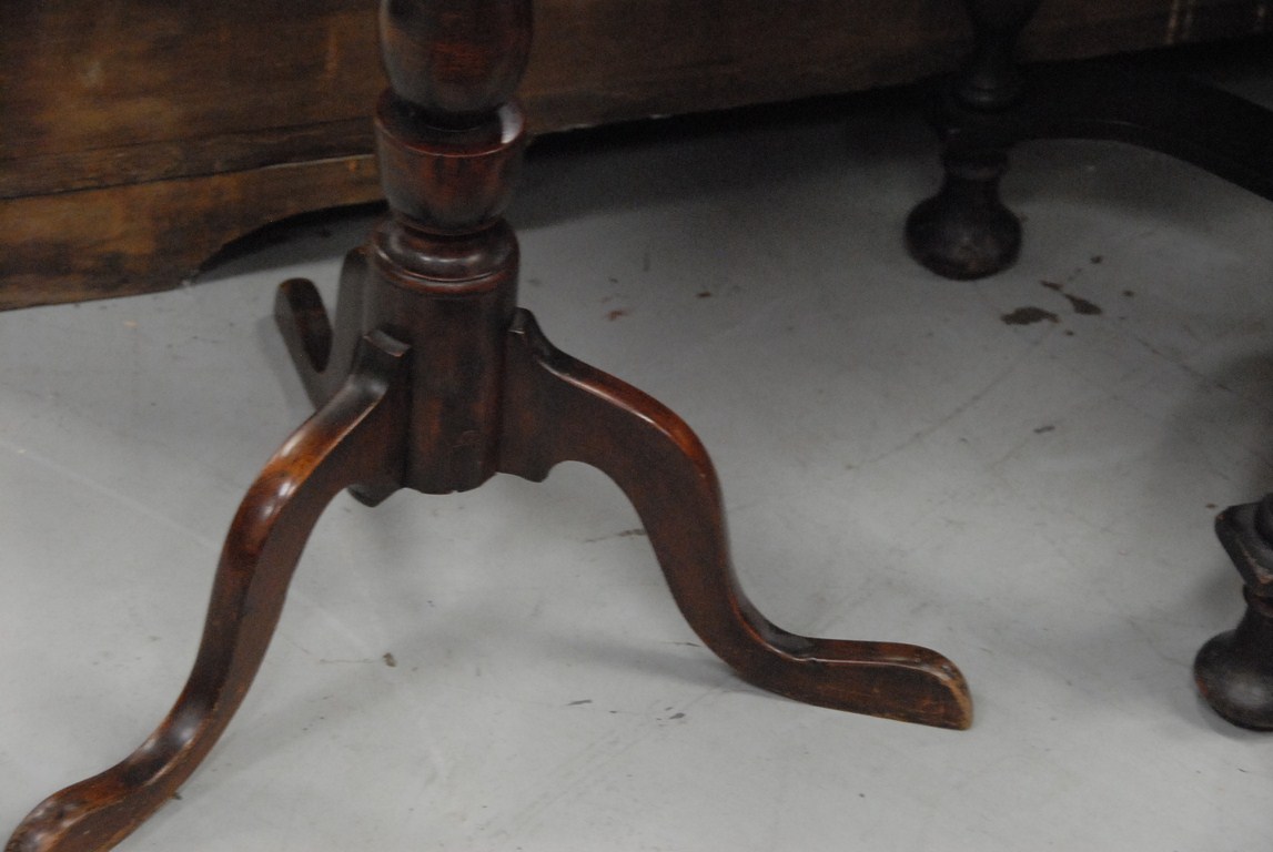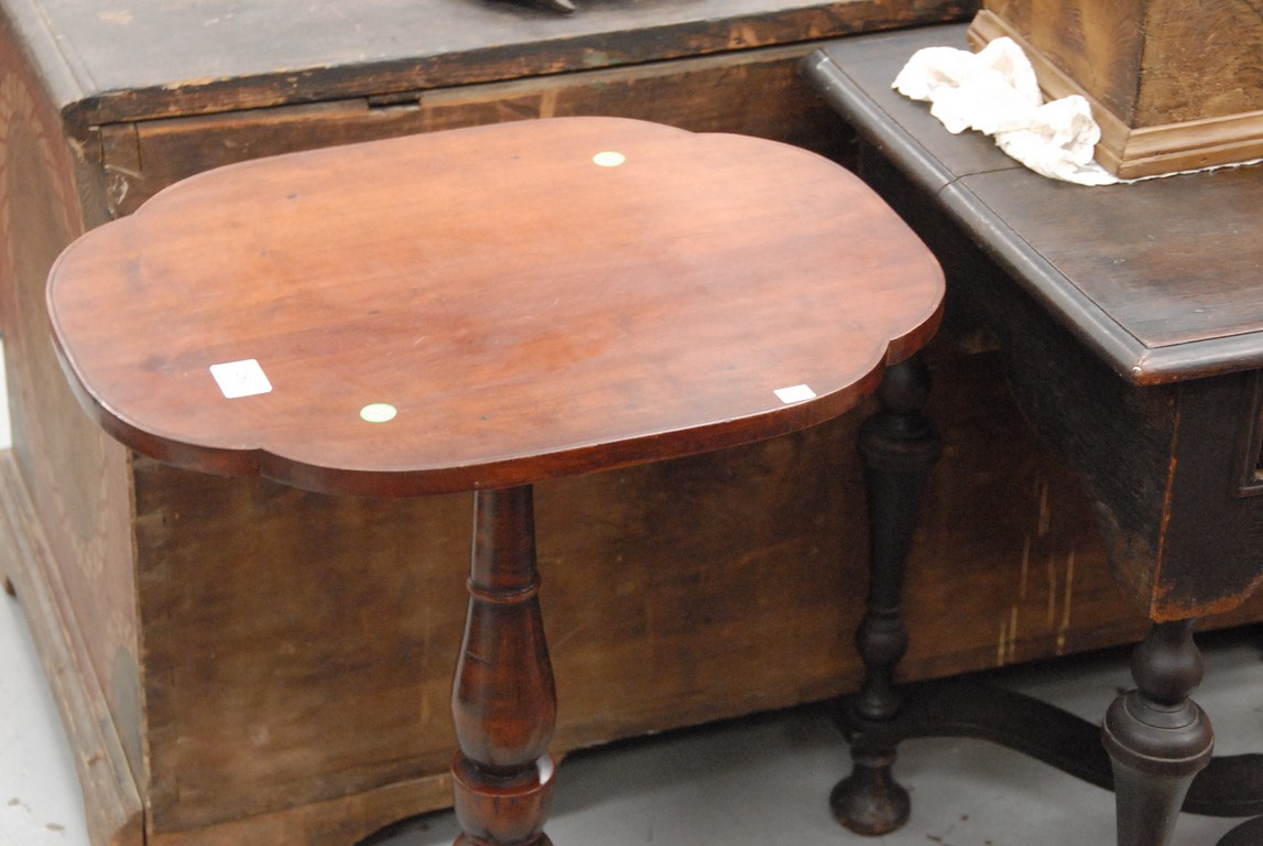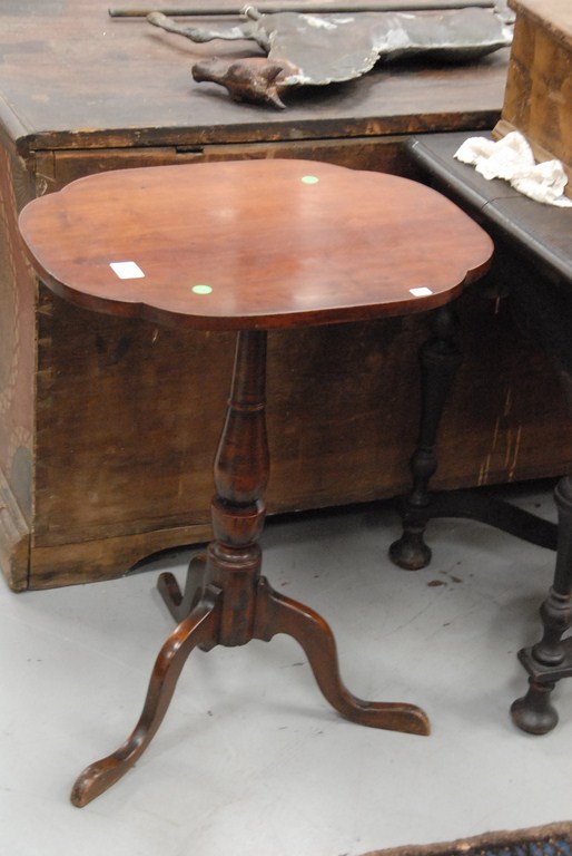 Lot 253: Federal cherry candlestand with shaped top on turned shaft and tripod base. ht. 26in. lg. 20in. wd. 16in.