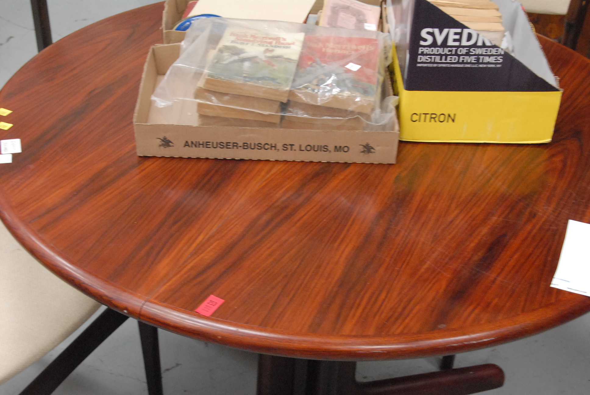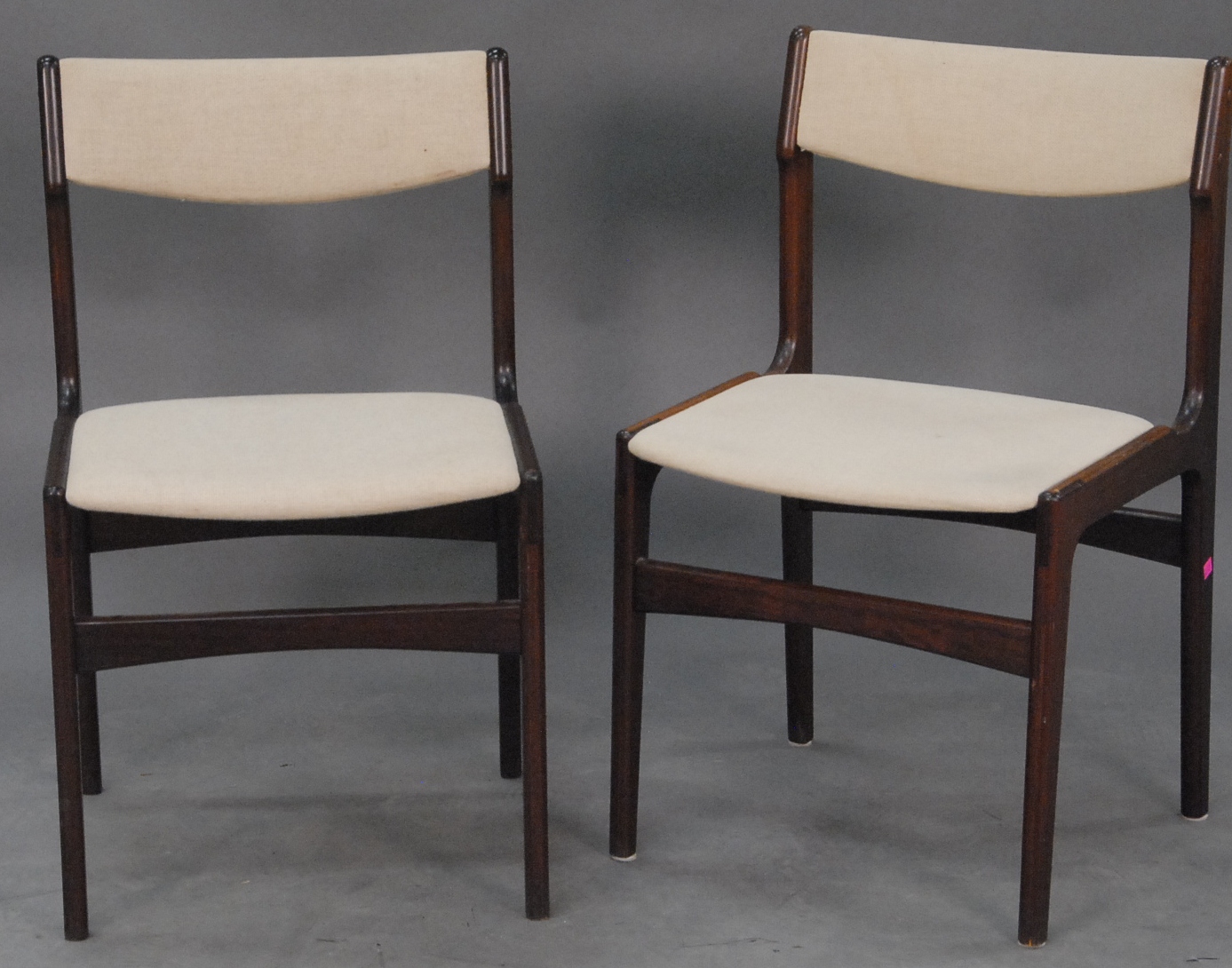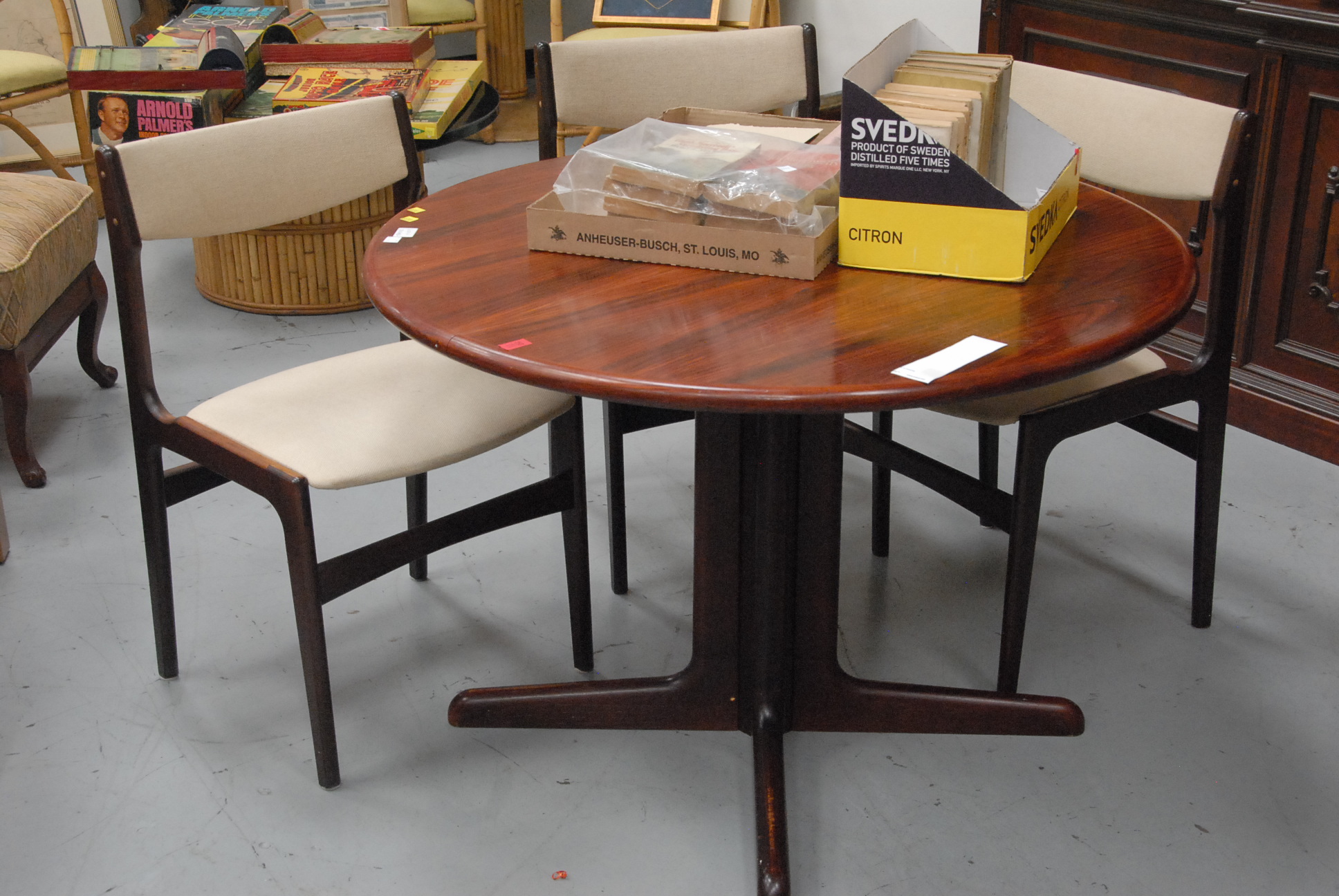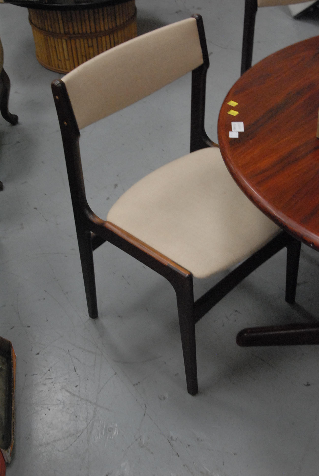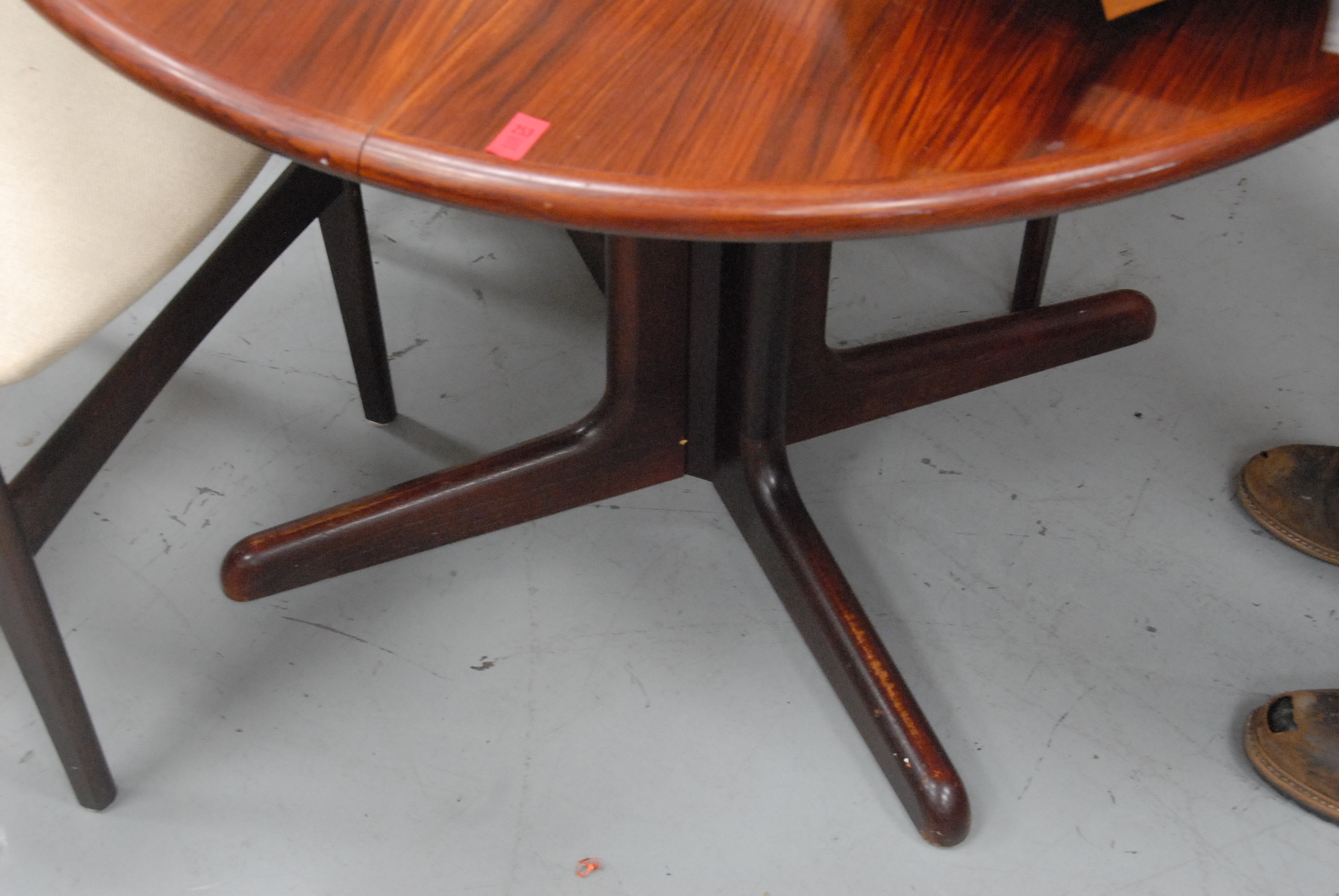 Lot 253: Laminated rosewood dining table manufactured by Gudme Mobelfabrik A/S together with four laminated rosewood dining chairs by Anderst…