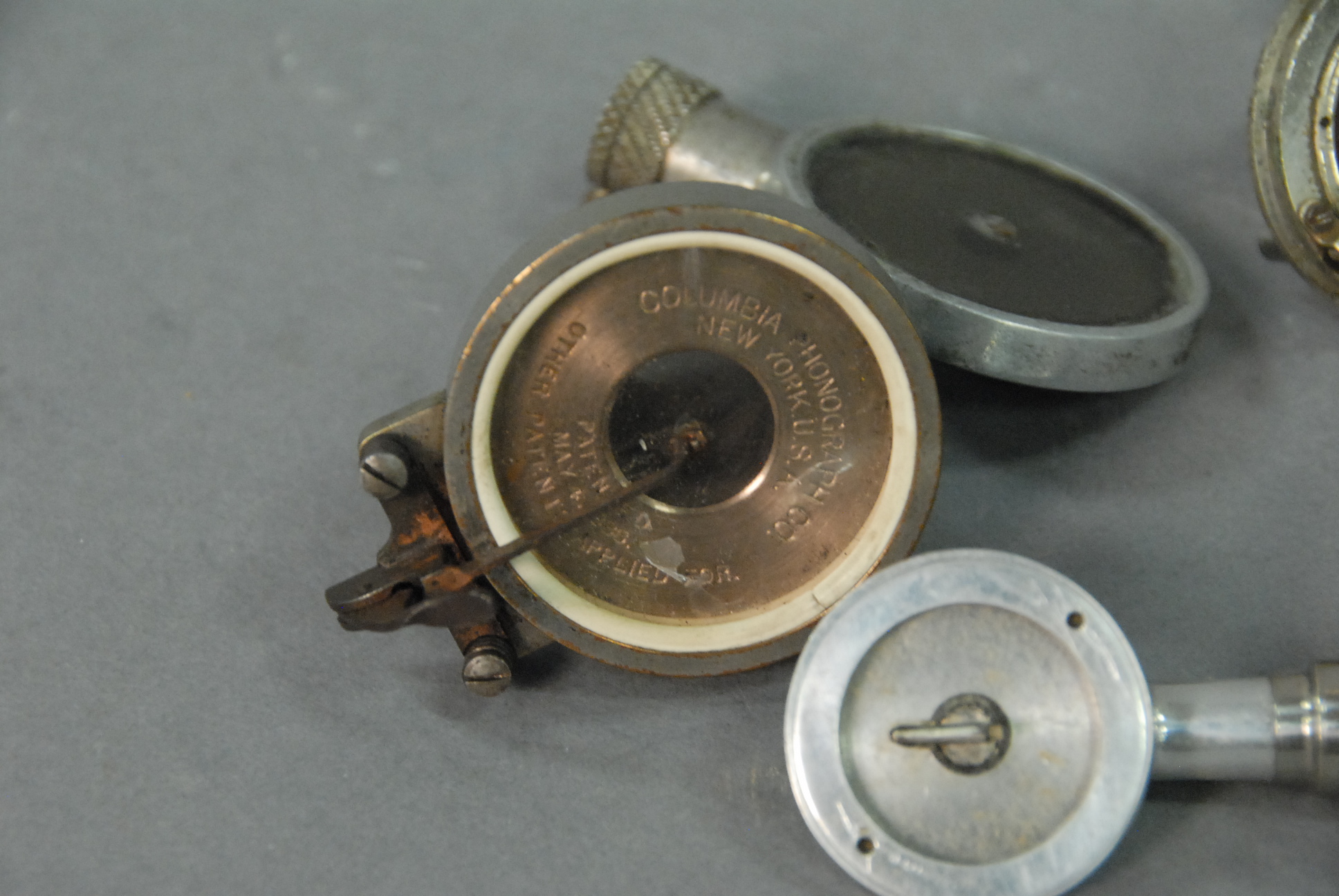 Lot of seven Columbia reproducers including disc reproducer, cylinder reproducers, and cylinder recorders.