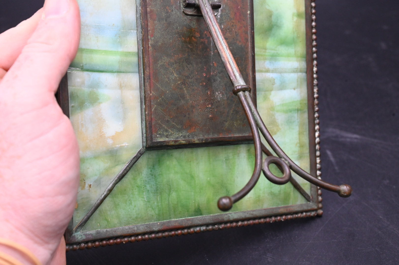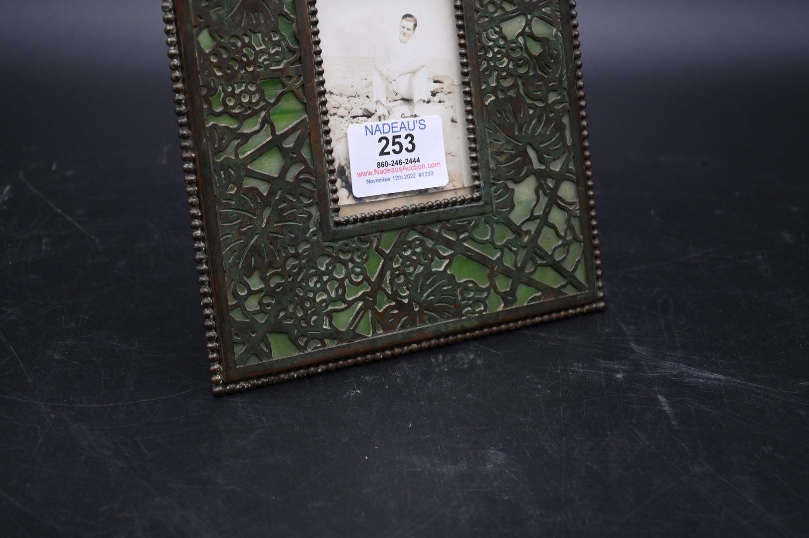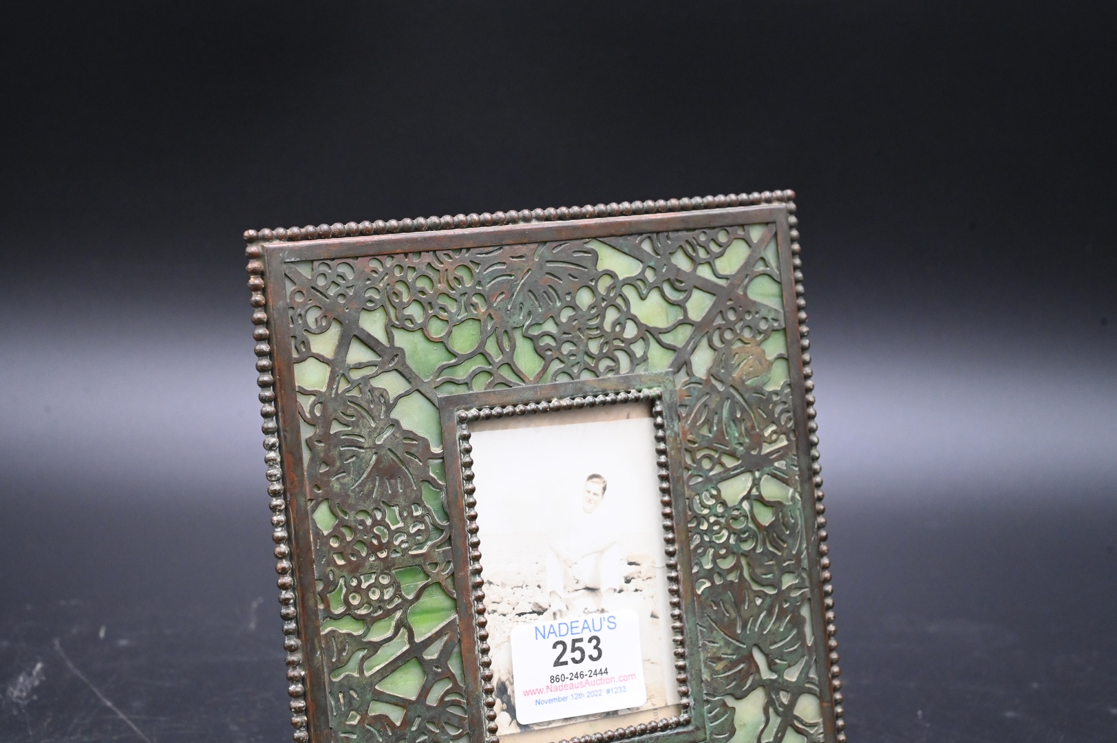 Lot 253: Tiffany Studios Grapevine Patinated Bronze and Slag Glass Picture Frame