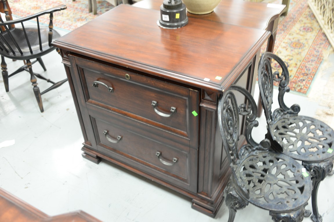 Two piece lot contemporary desk and lateral file cabinet, desk ht. 31 in., top 27 x 62.