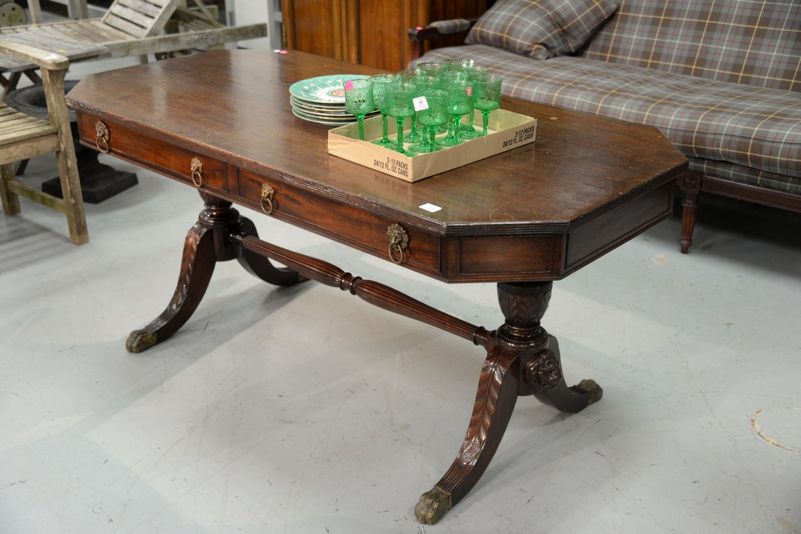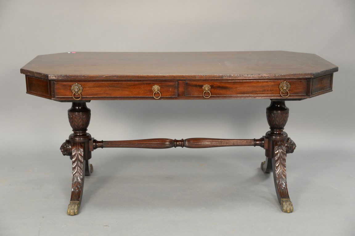 Custom mahogany hall table with two drawers. top: 31 x 64