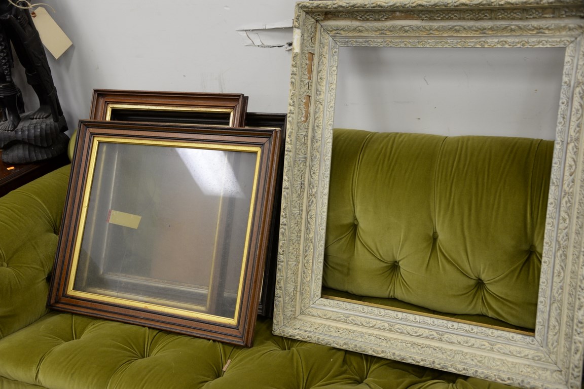 Lot 254: Eight frames, four are Victorian walnut. inside dimensions 19 3/4 x 31 1/4 x 2 3/4, 24 1/4 x 20 1/4 x 4 3/4, 22 1/4 x 2…