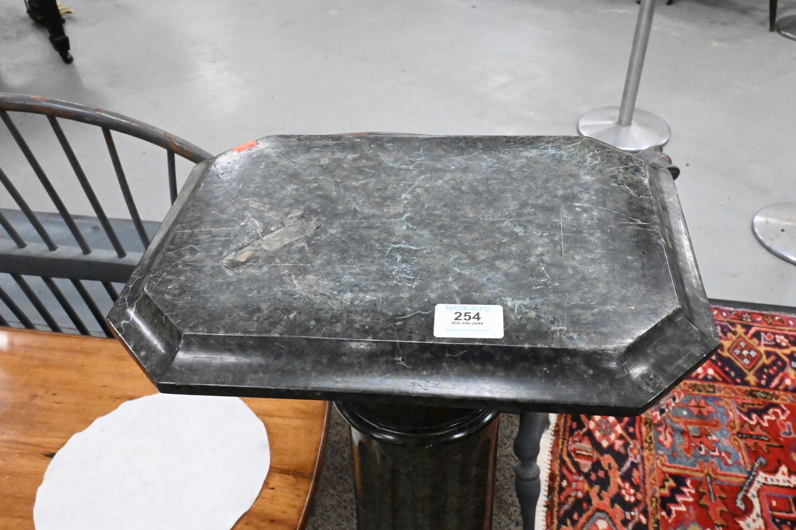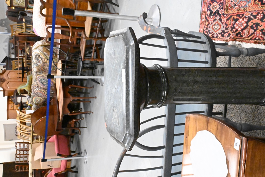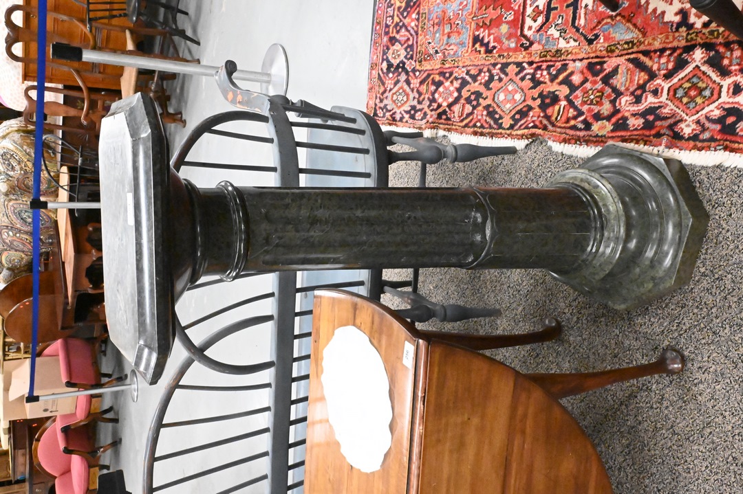 Granite Pedestal, having one small repair on shaft, height 43 inches, top 11″ x 14″. Provenance: Estate of Peter Tillou, Litchfield, Connecticut.