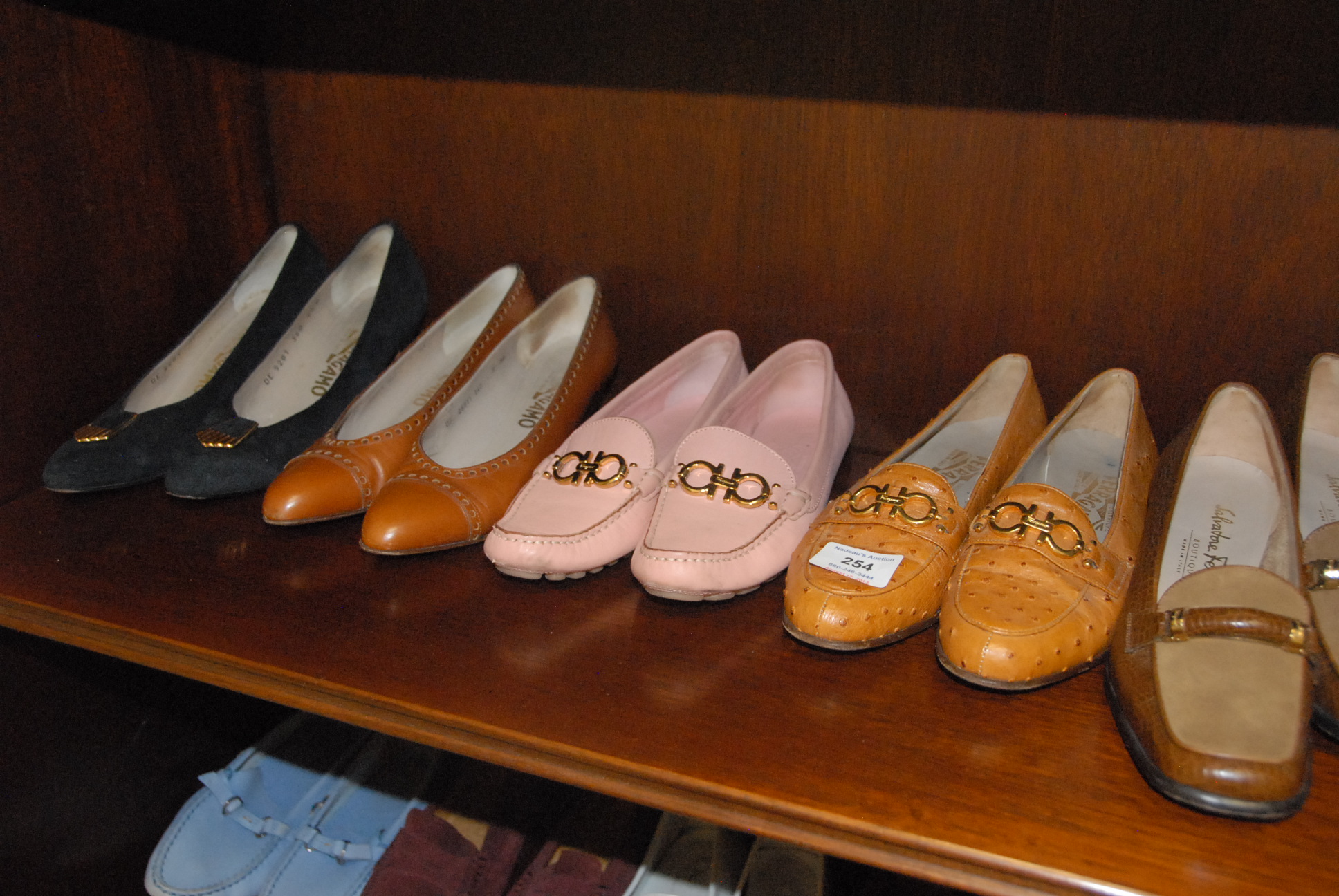 Lot 254: Group of sixteen pairs of shoes to include six pairs of Ferragamo, six pairs of Tod’s, two pairs of Mancini, etc.