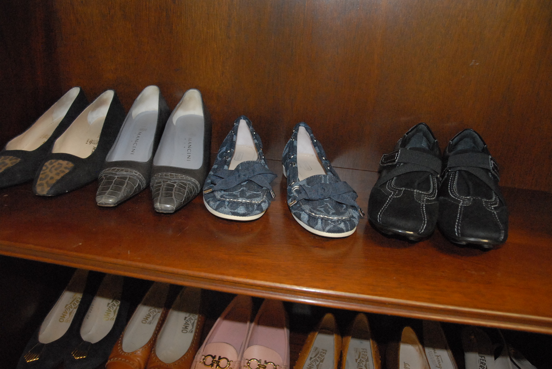 Group of sixteen pairs of shoes to include six pairs of Ferragamo, six pairs of Tod’s, two pairs of Mancini, etc.