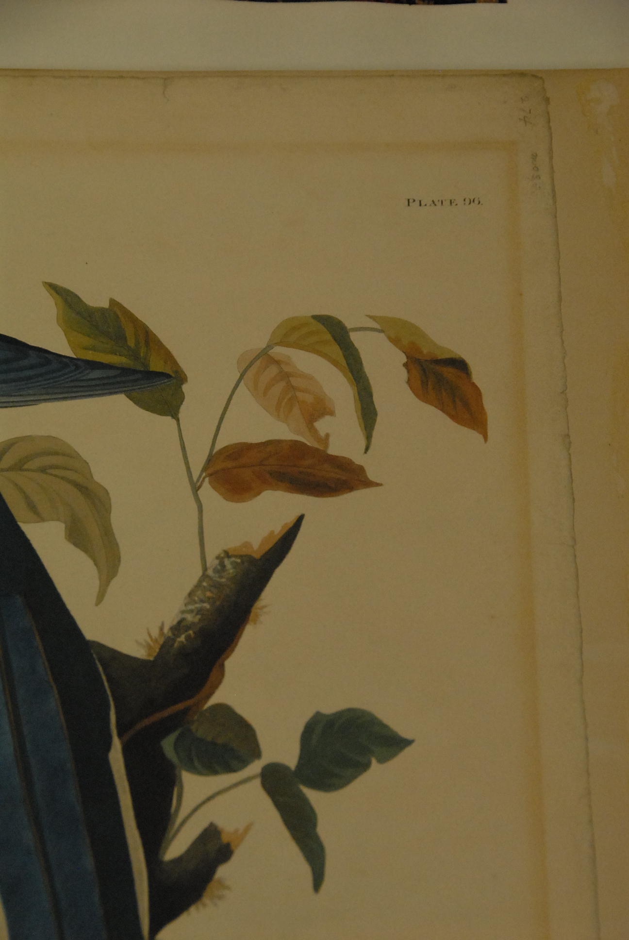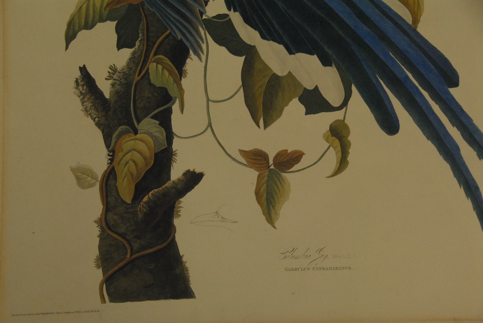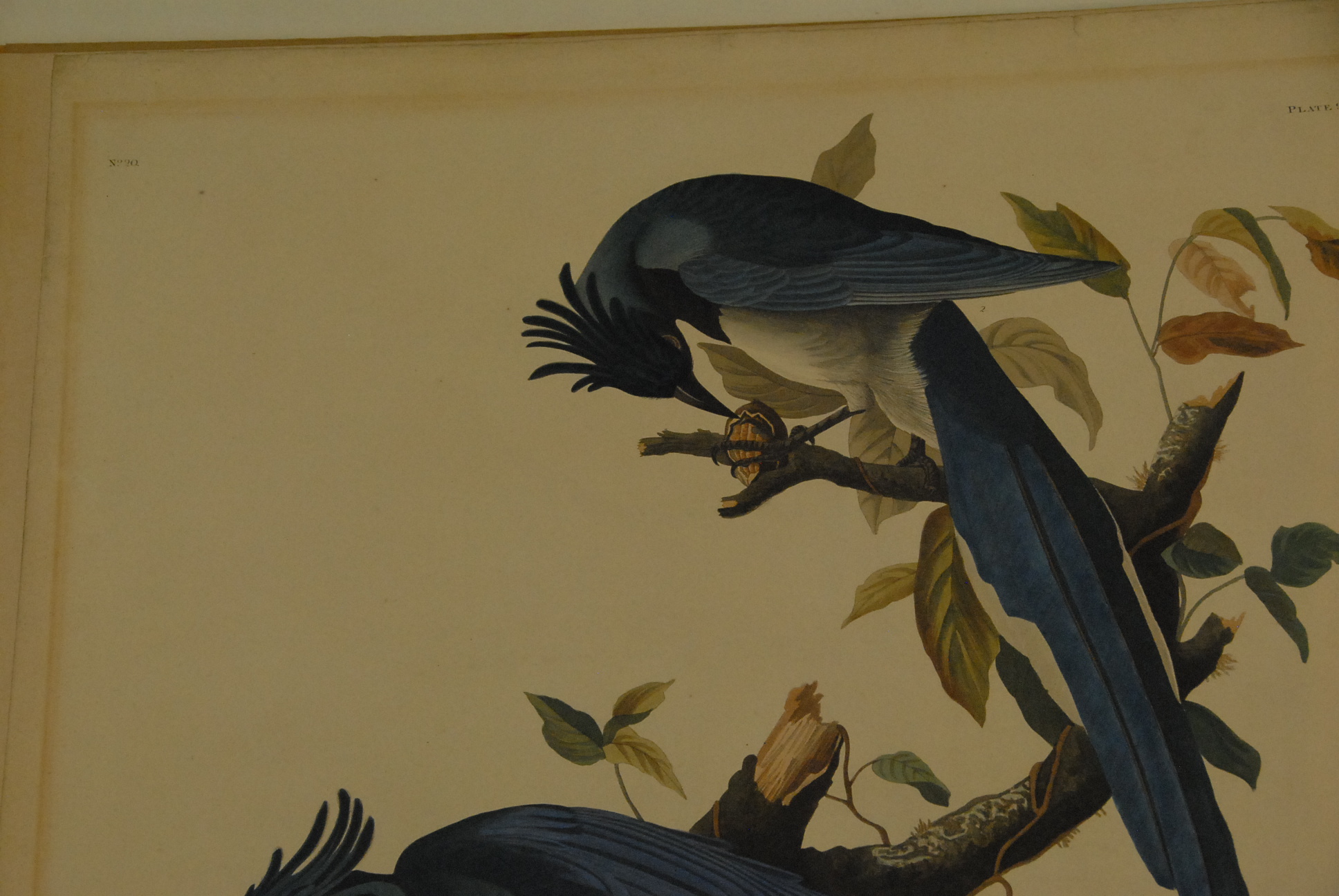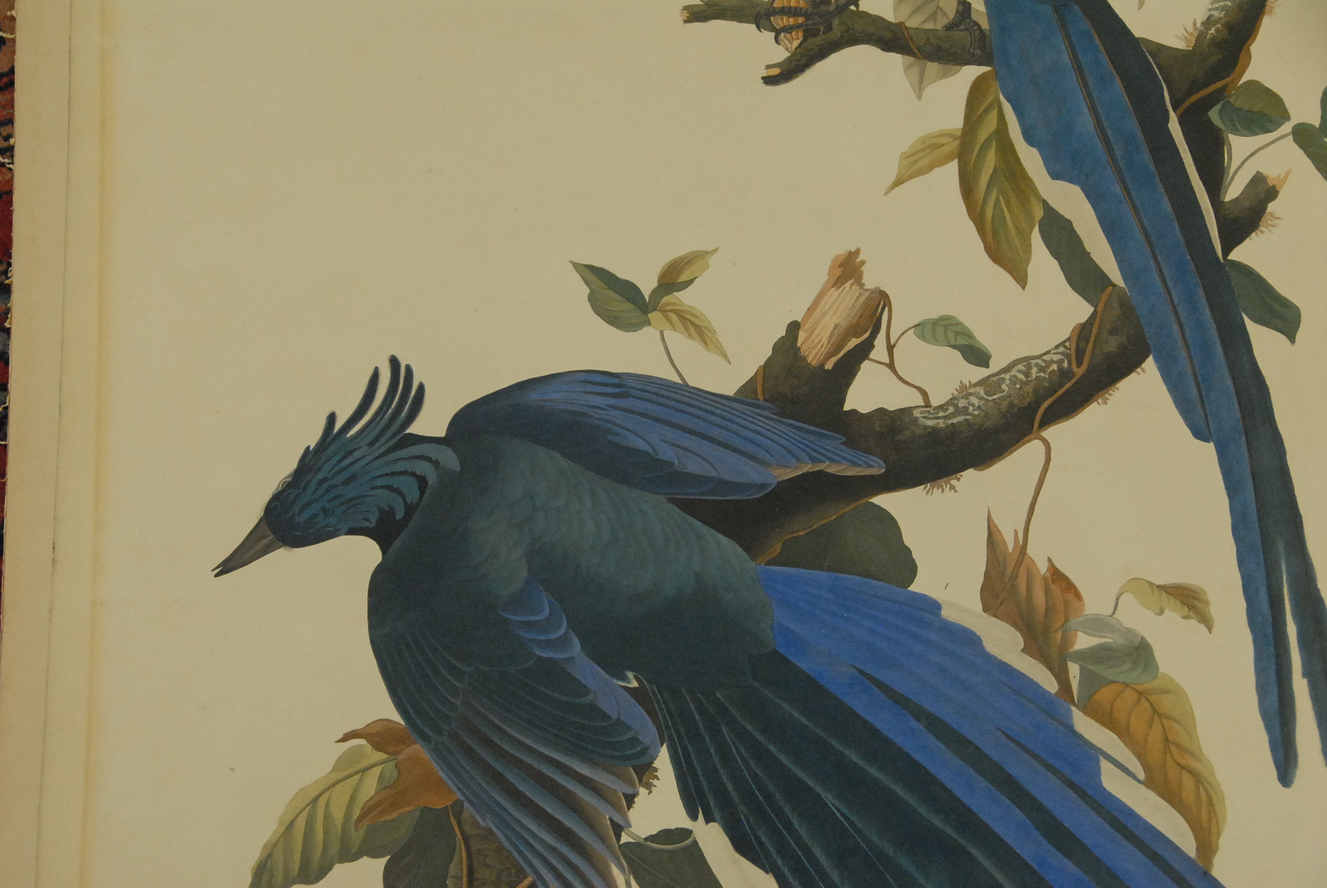 Lot 254: John James Audubon 1785-1851 COLUMBIA JAY Garrulus Ultramarinus Plate 96 No. 90 hand colored engraving mounted on board marked lower left: Drawn from nature and published by John J. Audubon F.R.S.’s L&E F.L