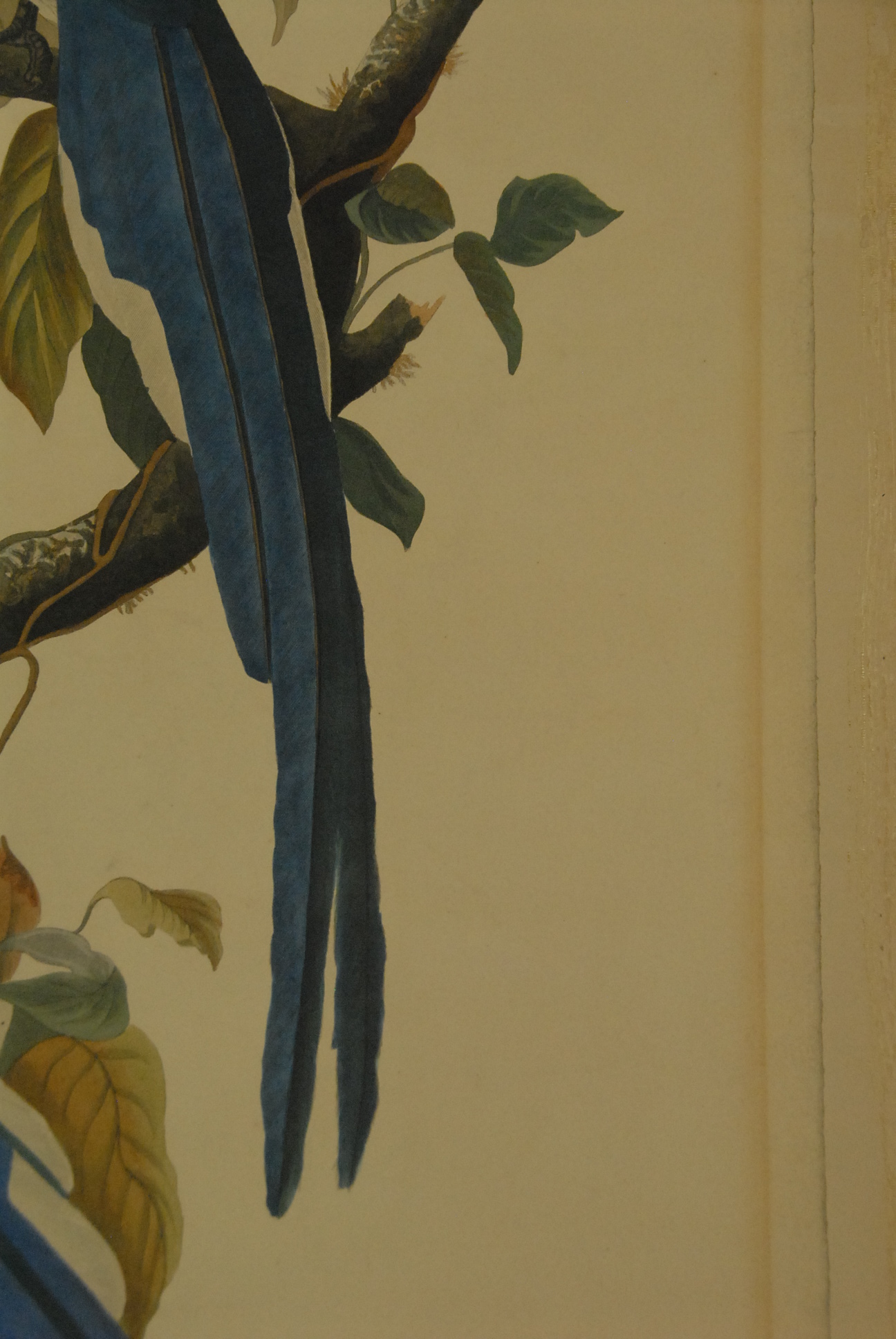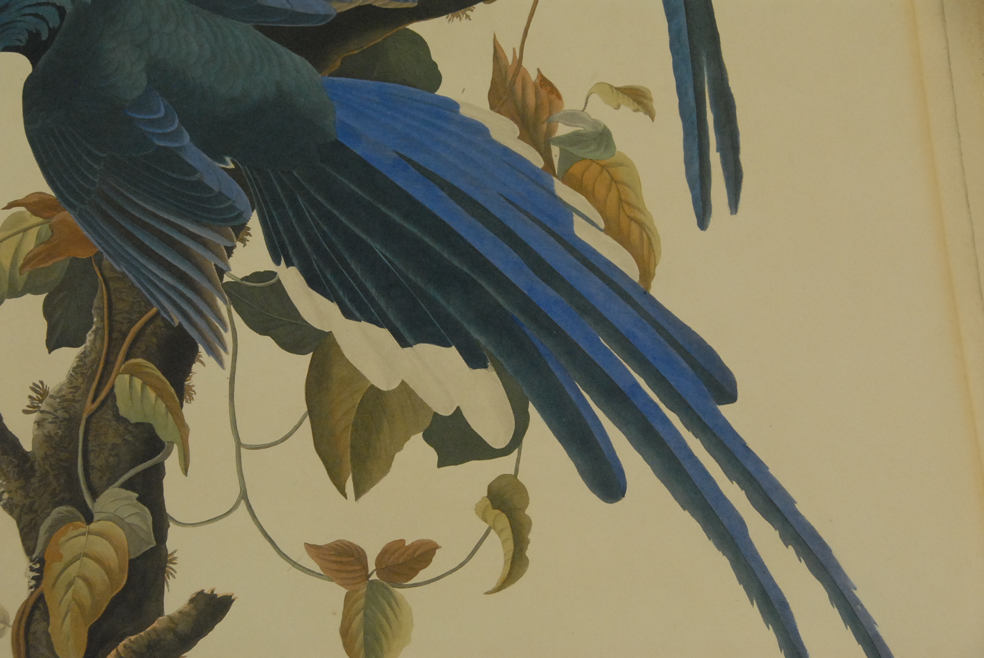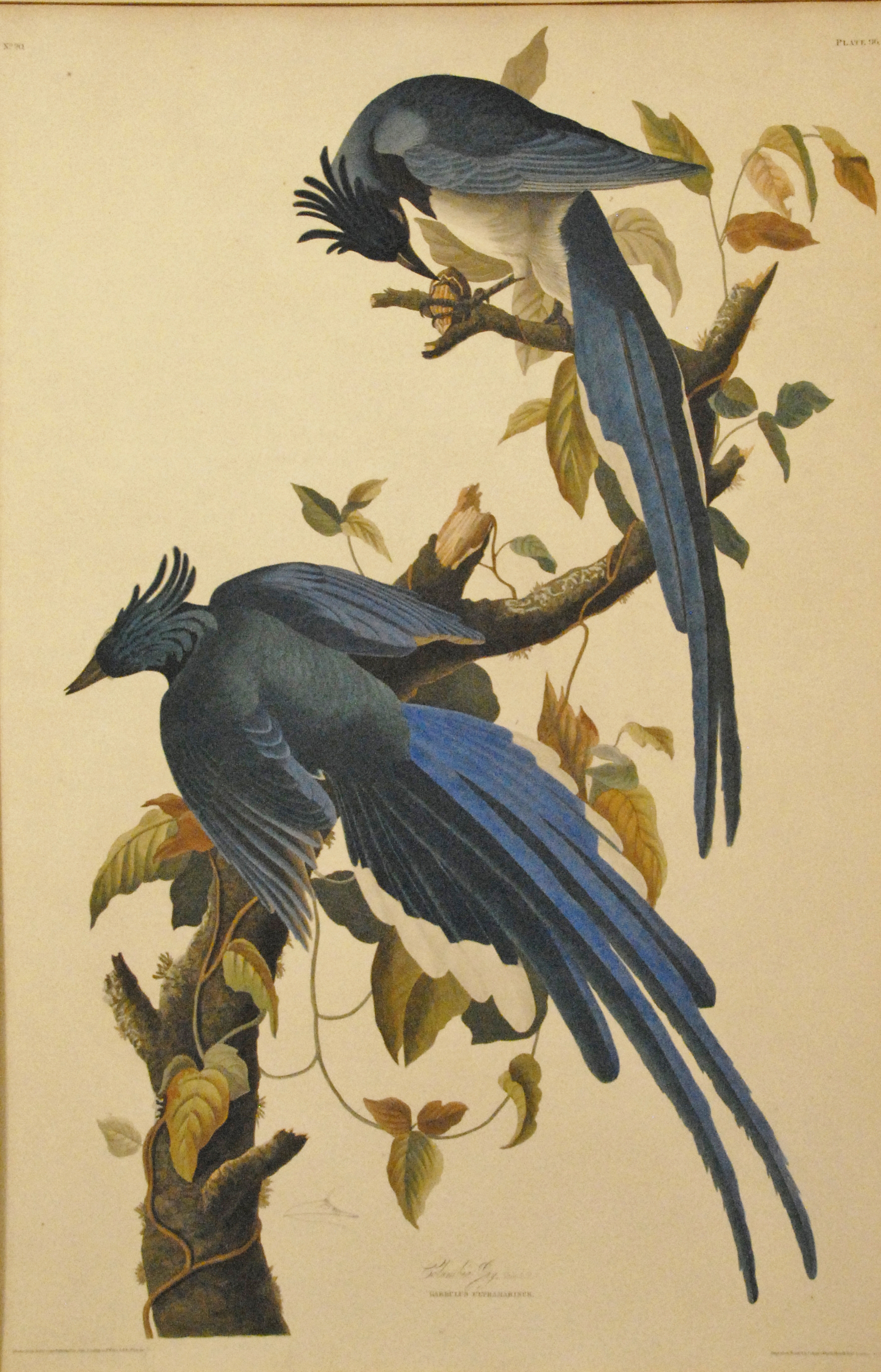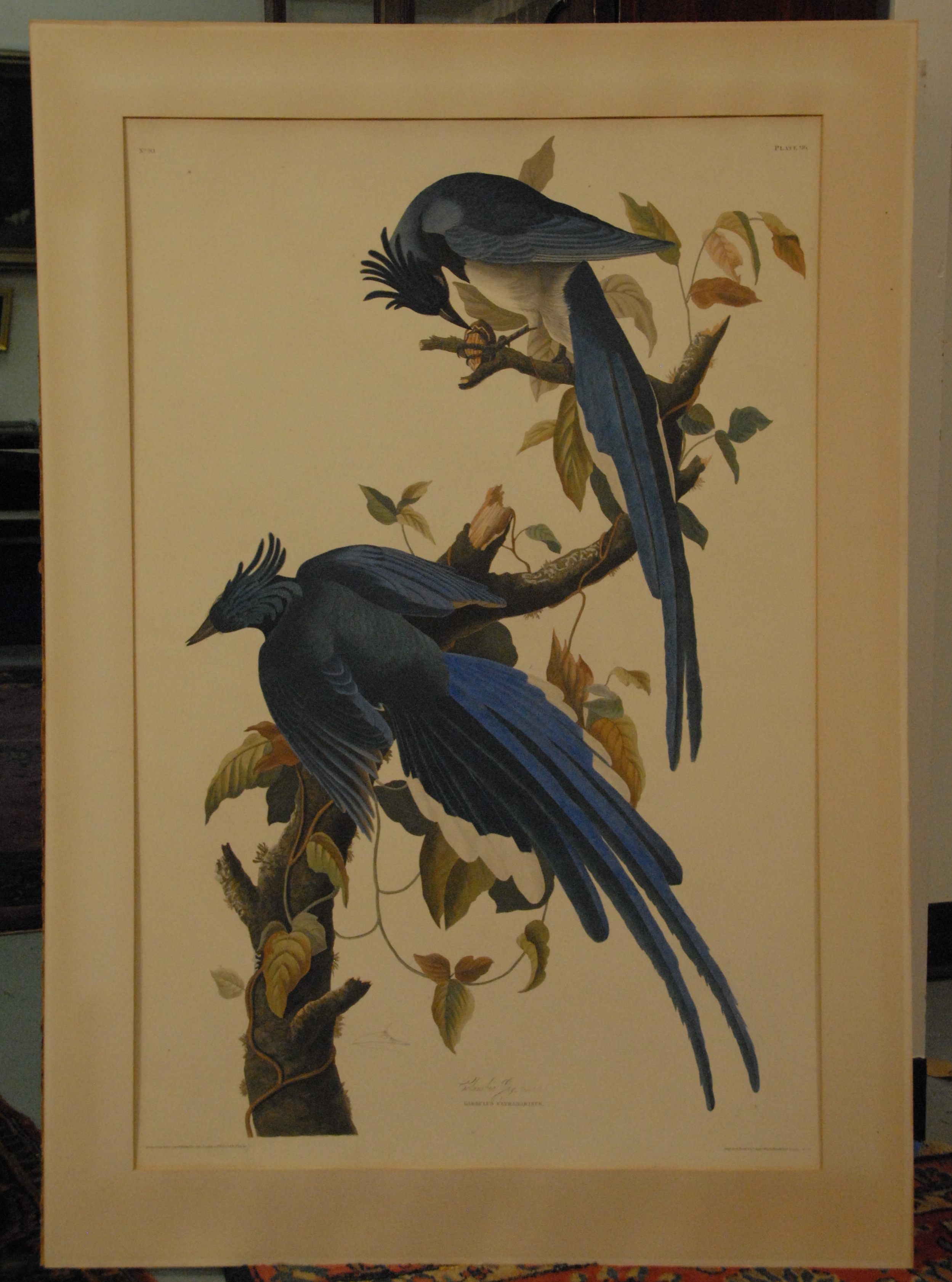 Lot 254: John James Audubon 1785-1851 COLUMBIA JAY Garrulus Ultramarinus Plate 96 No. 90 hand colored engraving mounted on board marked lower left: Drawn from nature and published by John J. Audubon F.R.S.’s L&E F.L