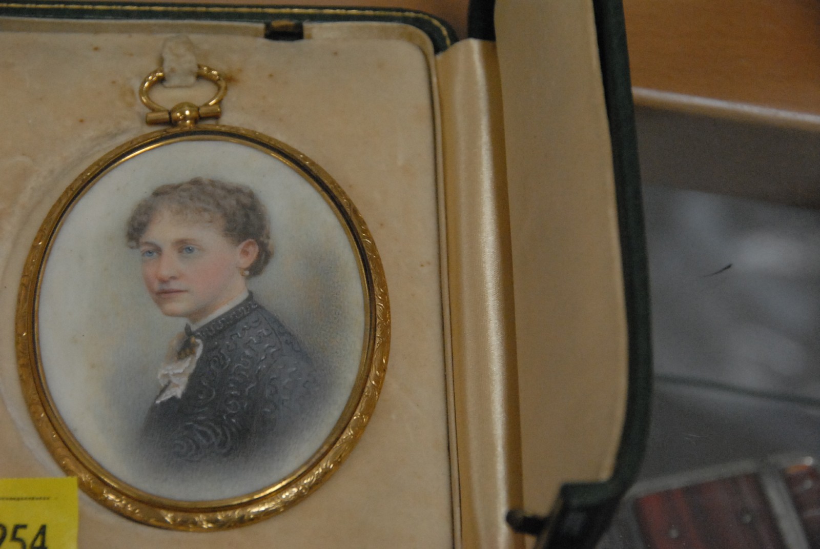 Miniature painting portrait on ivory in a leather fitted case