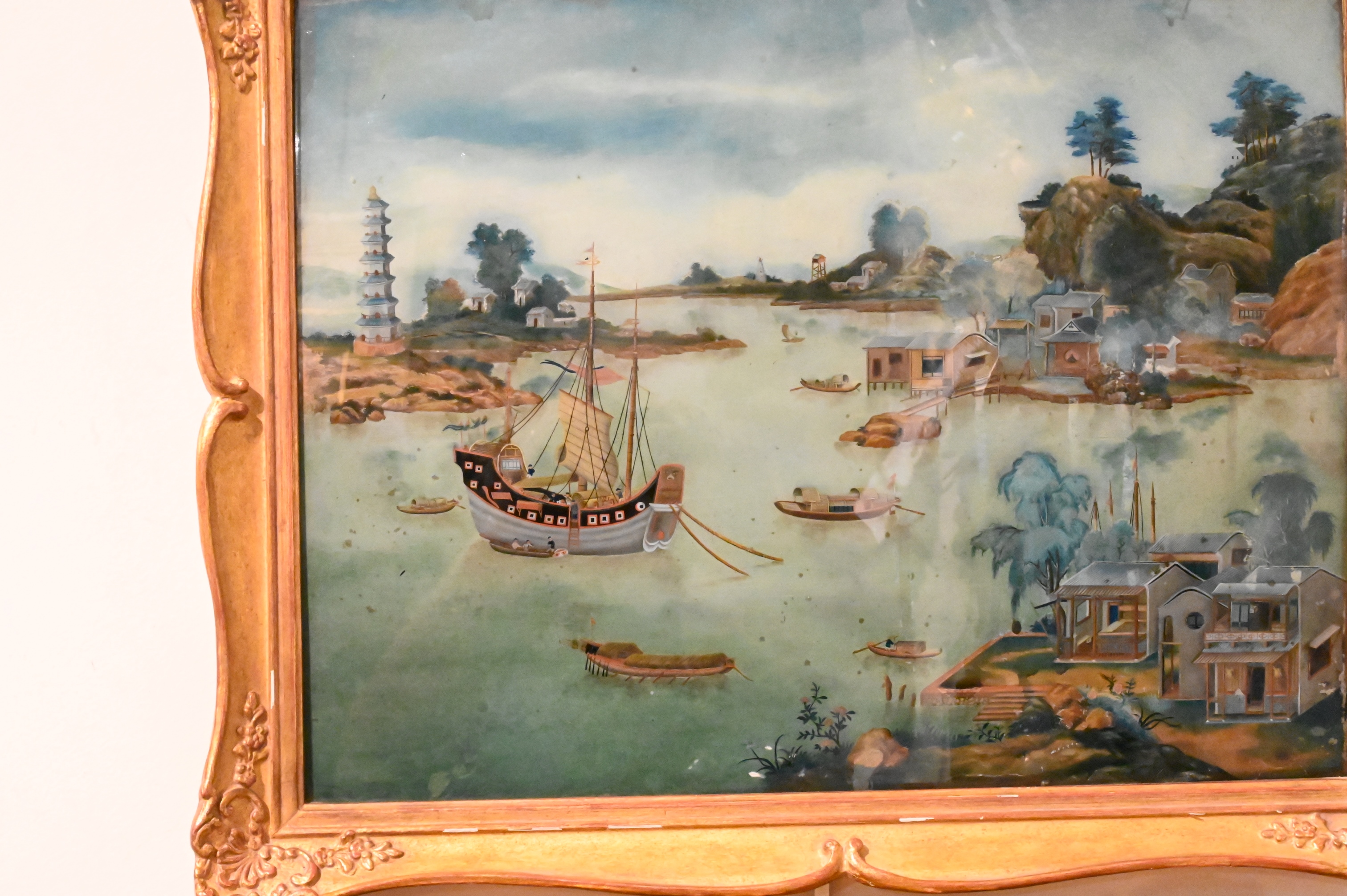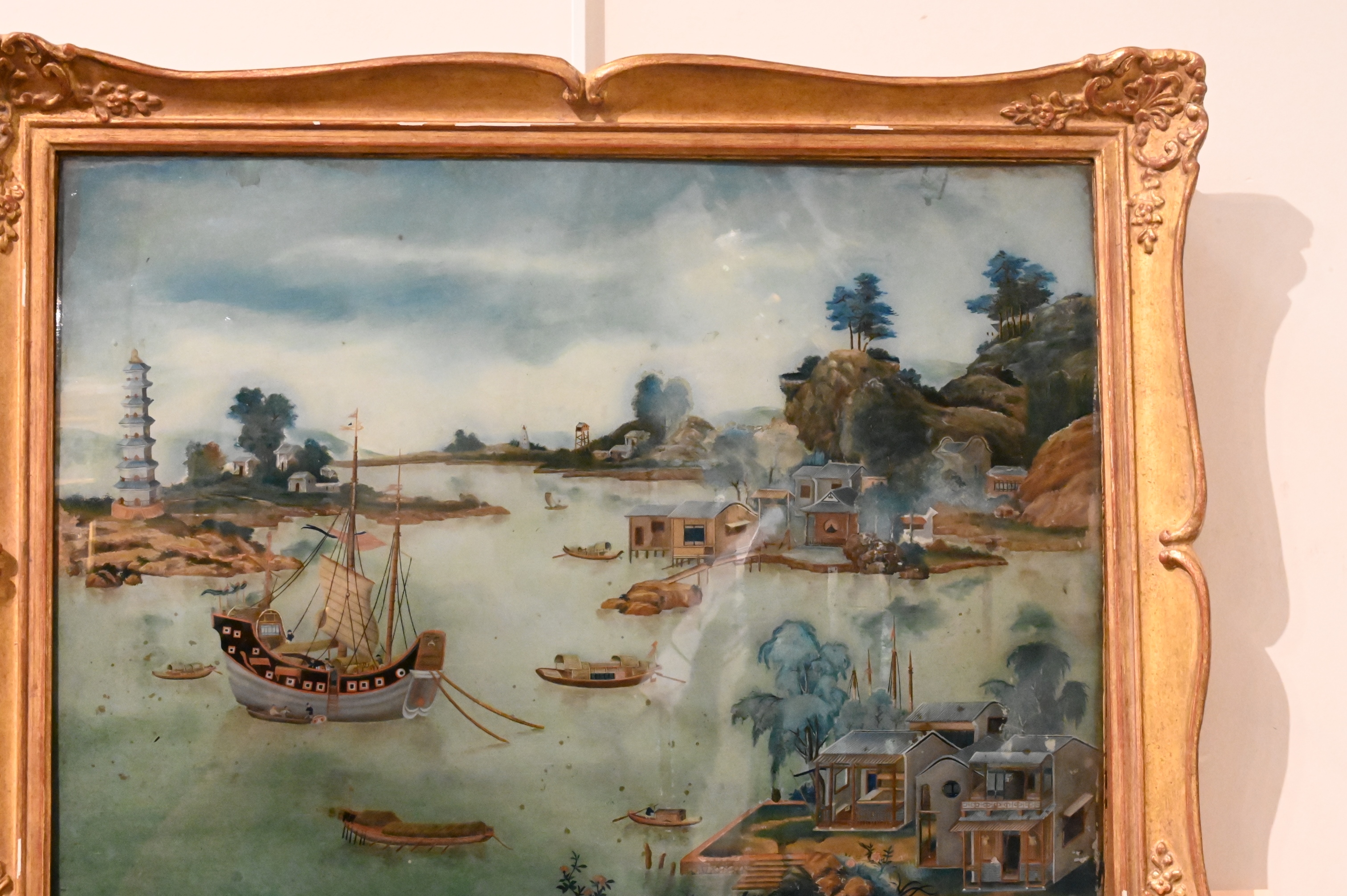 Pair of Early Chinese Export Reverse Glass Paintings