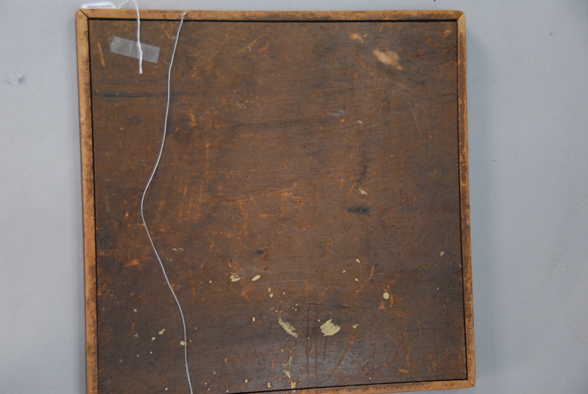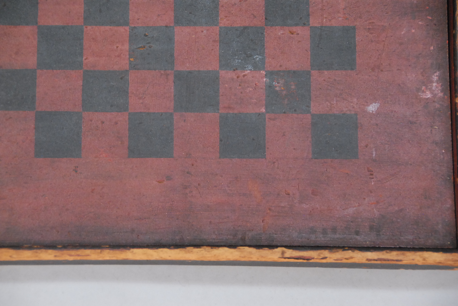 Primitive game board in red and black paint. 19 x 19.