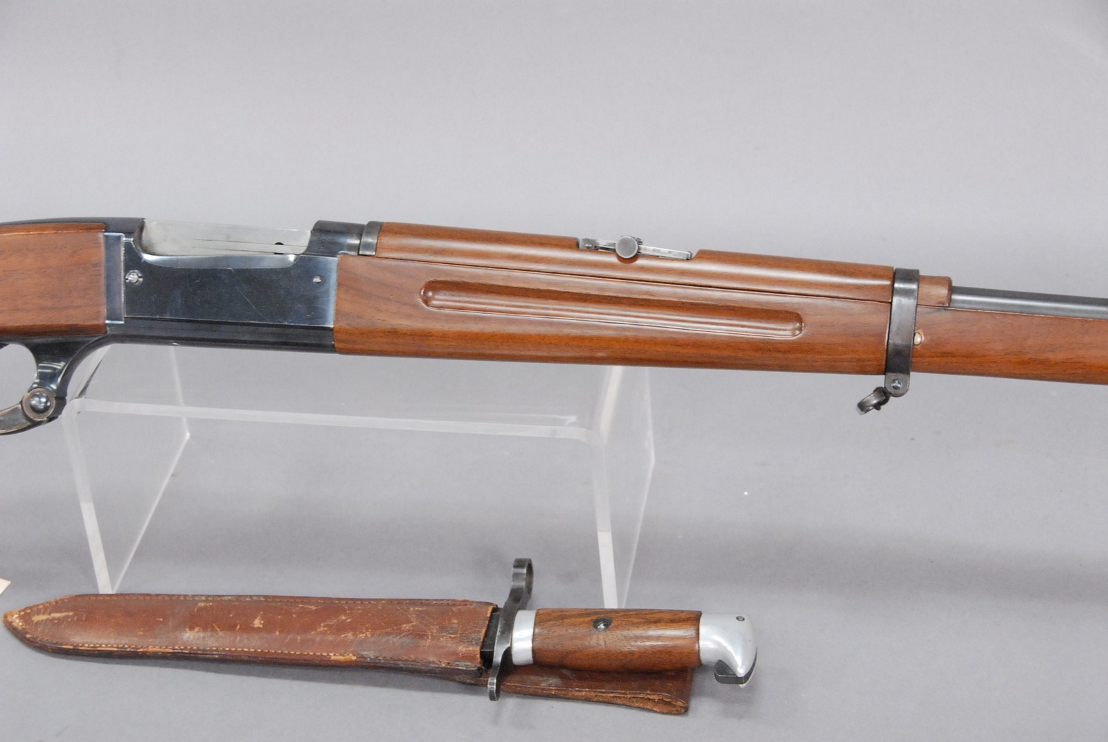 Savage model 1899 rifle, .303 caliber with 26 round barrel, lever action musket, marked SAV303 on top of barrel having manufacturing dates on top of barrel being sold along with a matching 1899 Savage bayonet with 9 blade. 239 SN-168564
