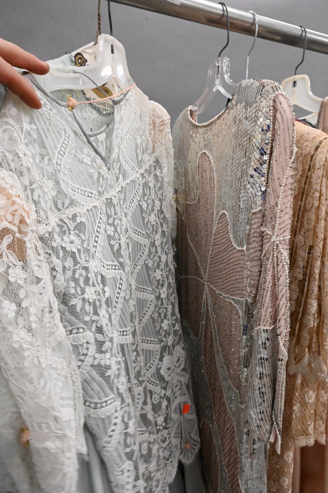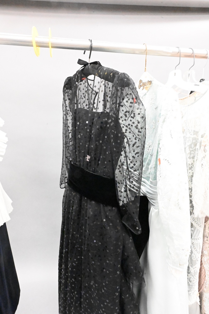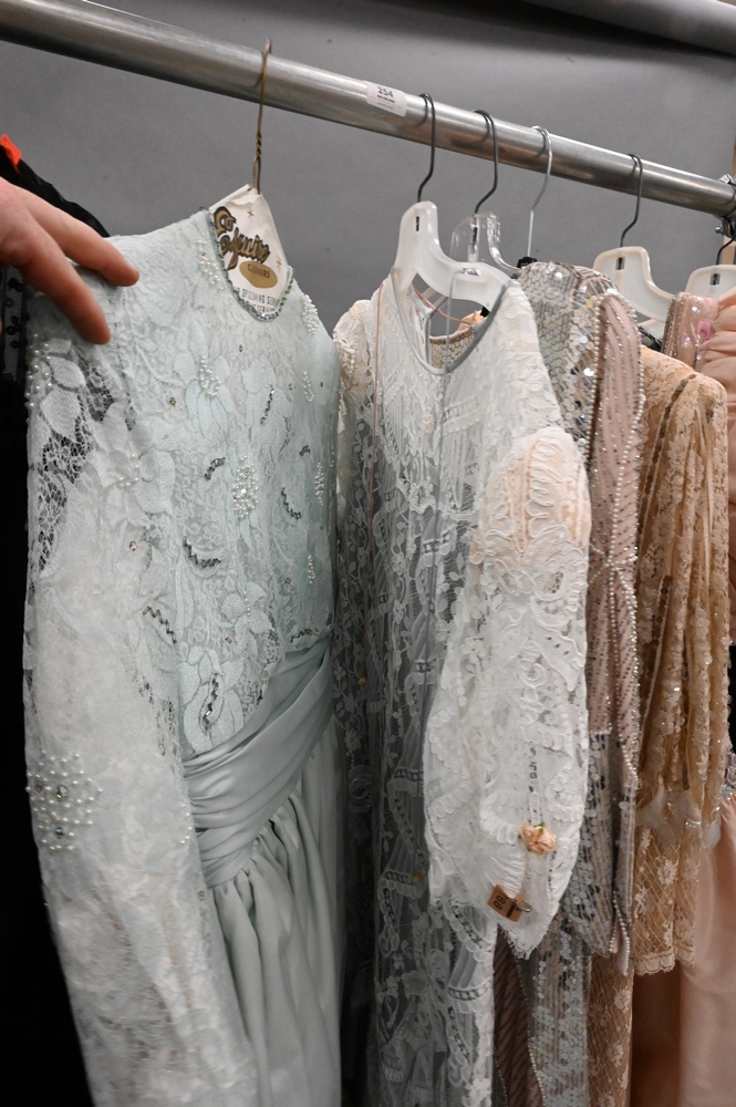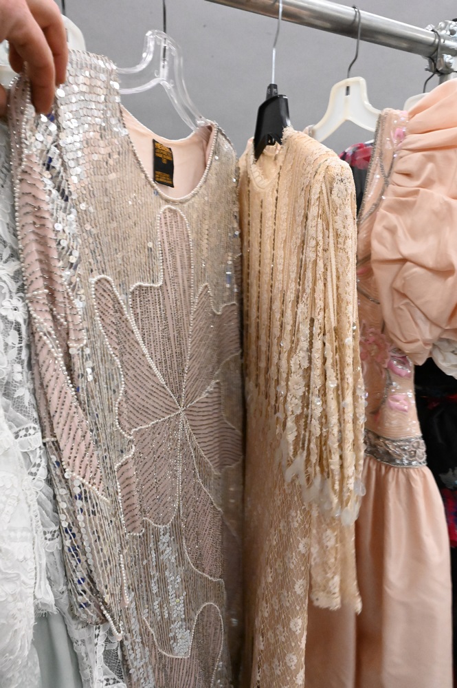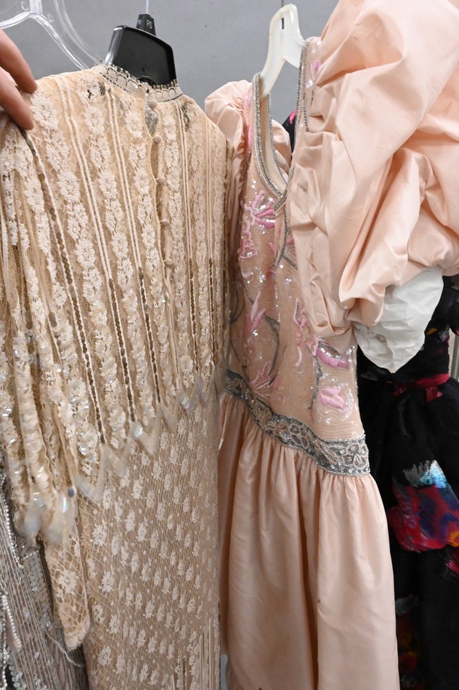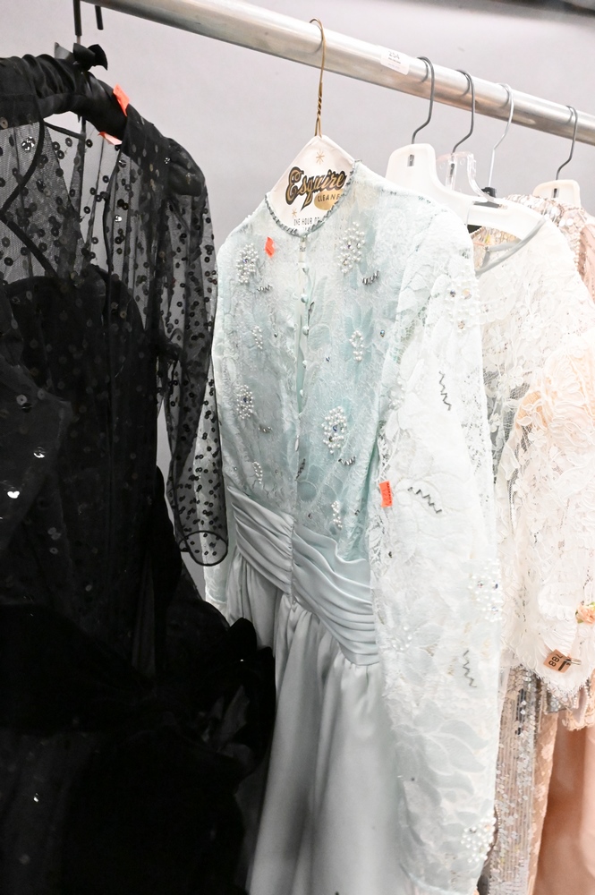 Lot 254: Seven Piece Women’s Vintage Couture Lot, to include a Megere sequin dress, size small; two Rina Di Montella lace dresses, size 8; Ri…