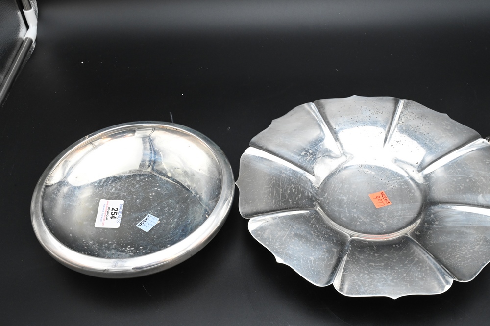 Lot 254: Three Piece Lot of Sterling Silver, to include 1 plate and 2 shallow bowls, 46 t.oz.