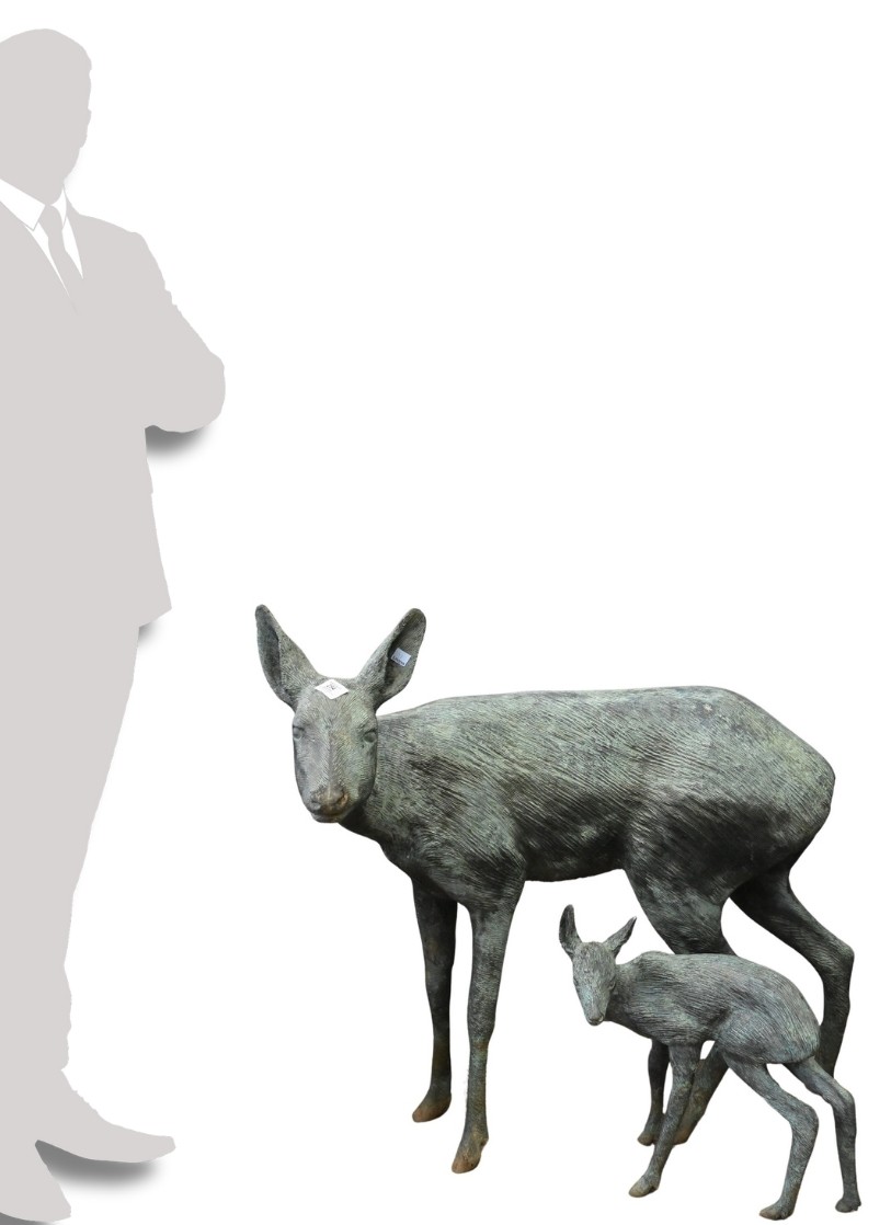Lot 254: Two Cast Bronze Deer, Doe, and Fawn