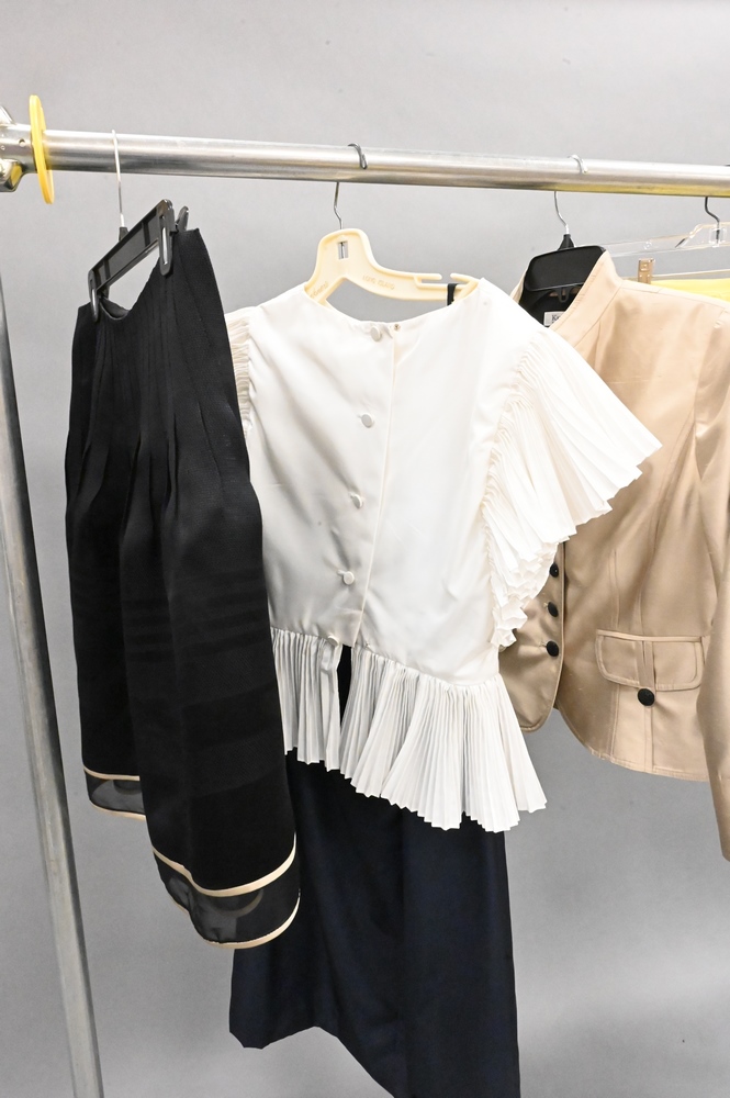 Lot 255: 11 Piece Vintage Couture Lot, to include a two-piece Albert Nipon skirt and blazer, size 8; a two-piece Anne Klein skirt and blazer,…