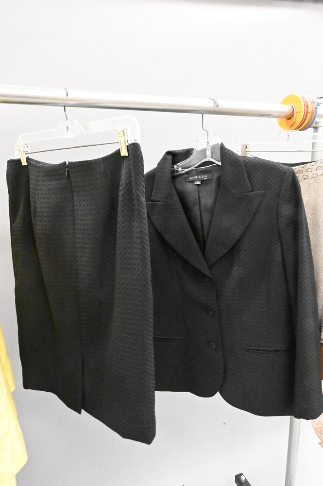 11 Piece Vintage Couture Lot, to include a two-piece Albert Nipon skirt and blazer, size 8; a two-piece Anne Klein skirt and blazer, size 12; a two-piece Kay Unger New York women’s suit, size 8; a two-piece Morton Myles women’s suit, size 8; along with 3 skirts by Acorn, Tribal & Delilah.