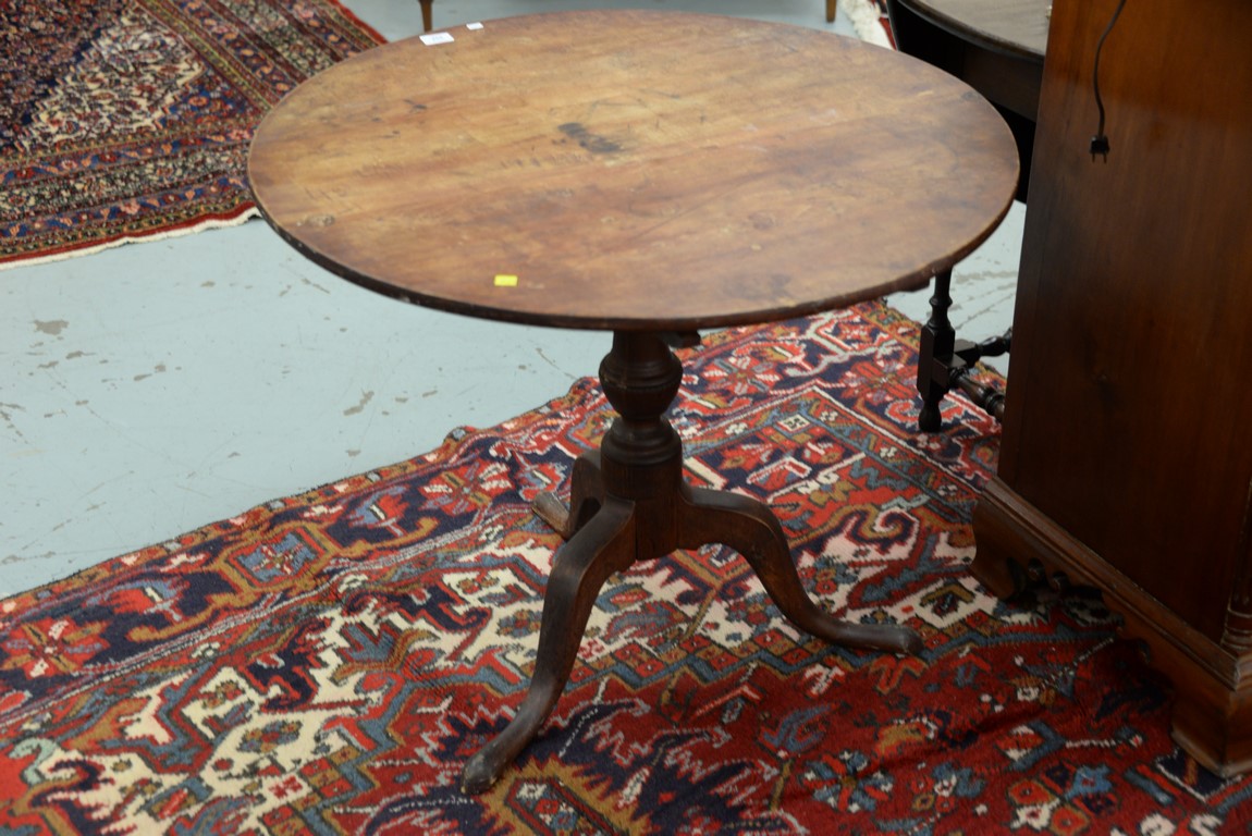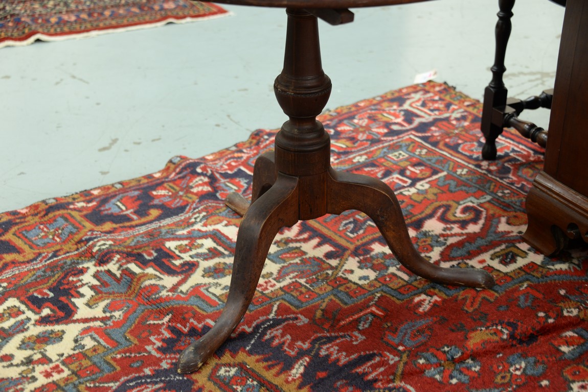 Cherry Federal tip tea table with chip carved urn on shaft. ht. 28 1/2 in. dia. 33 in.