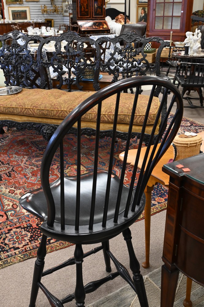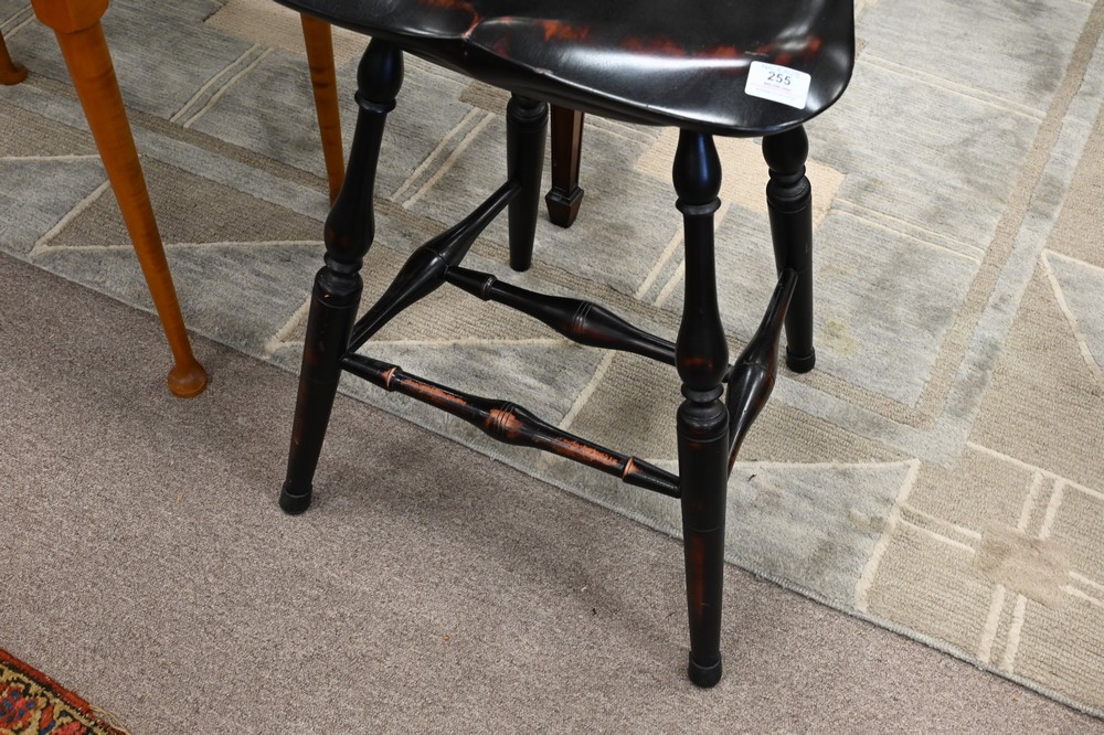 Lot 255: D.R. Dimes Pair of Bar Stools, on swivel bases, height 46 inches, seat height 26 inches.