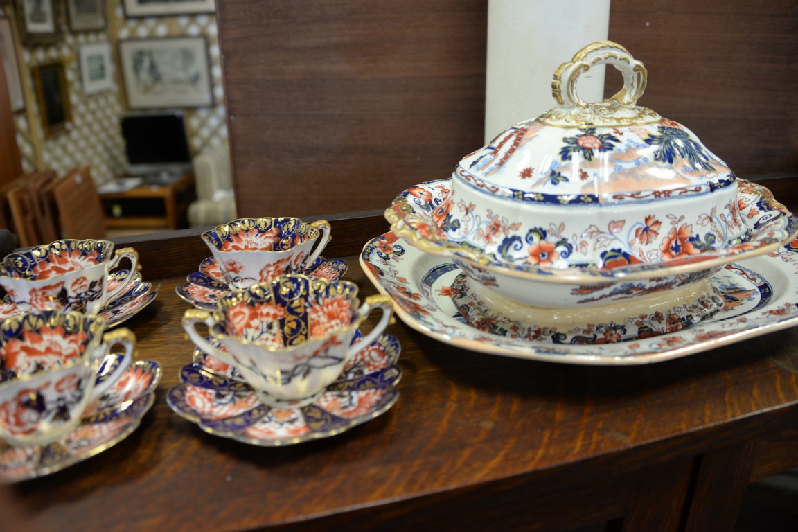 Imari pattern china, some Royal Crown Derby, 37 pieces.