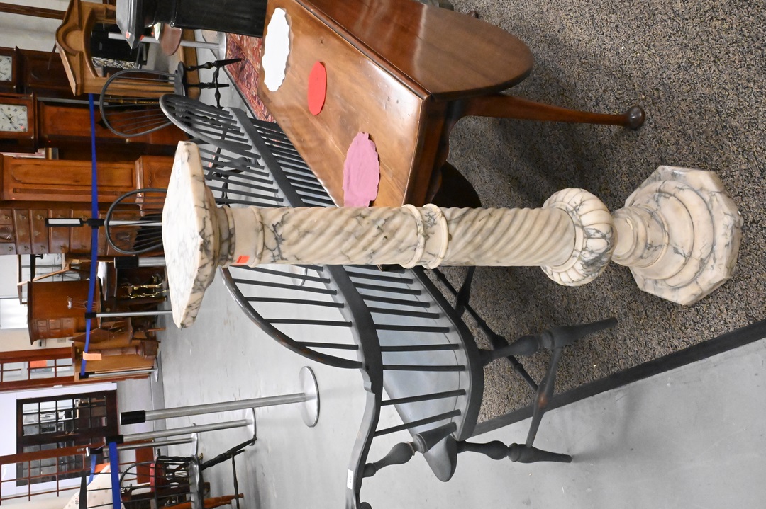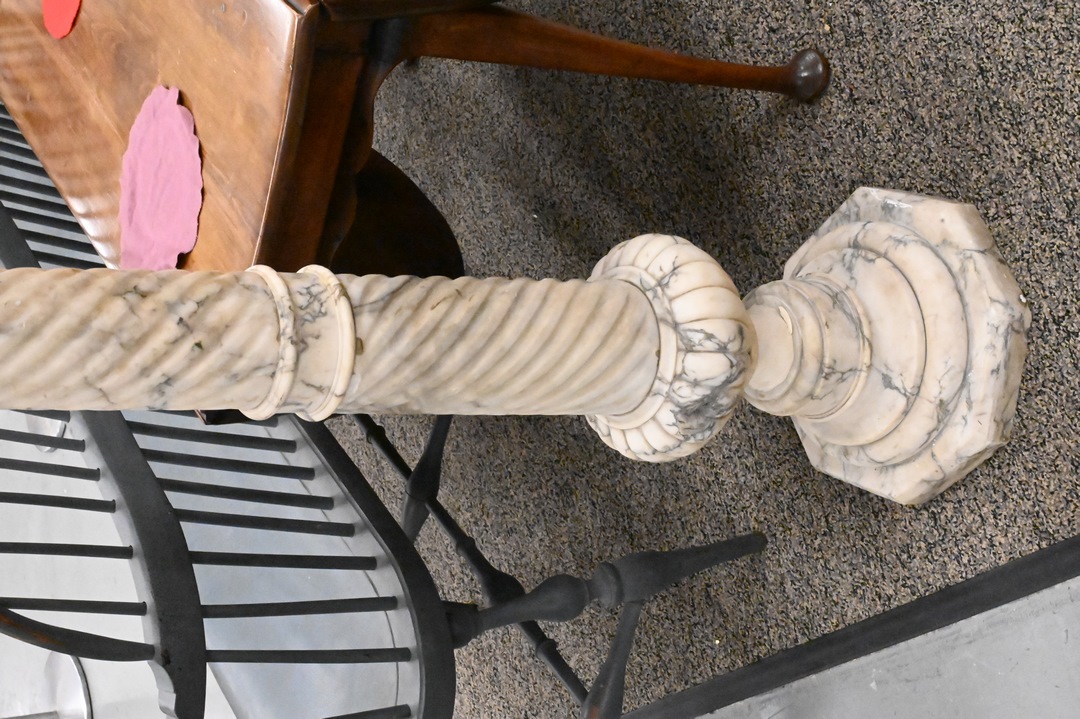 Marble Pedestal, height 44 inches, top 9″ x 9″. Provenance: Estate of Peter Tillou, Litchfield, Connecticut.