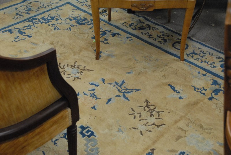 Peking Chinese Oriental gold carpet, late 19th – early 20th century some wear. 8’4 x 9’3