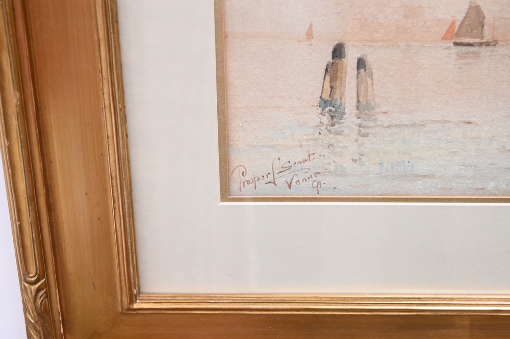 Prosper Louis Senat (1852 – 1925), Venice, watercolor, signed and titled lower left Prosper L Senat, Venice, sight size 10 3/4″ x 30 1/4″.