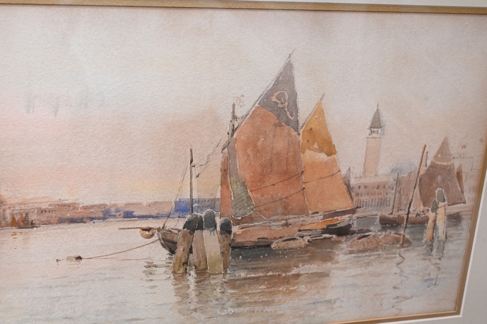 Lot 255: Prosper Louis Senat (1852 – 1925), Venice, watercolor, signed and titled lower left Prosper L Senat, Venice, sight size 10 3/4″ x 30 1/4″.