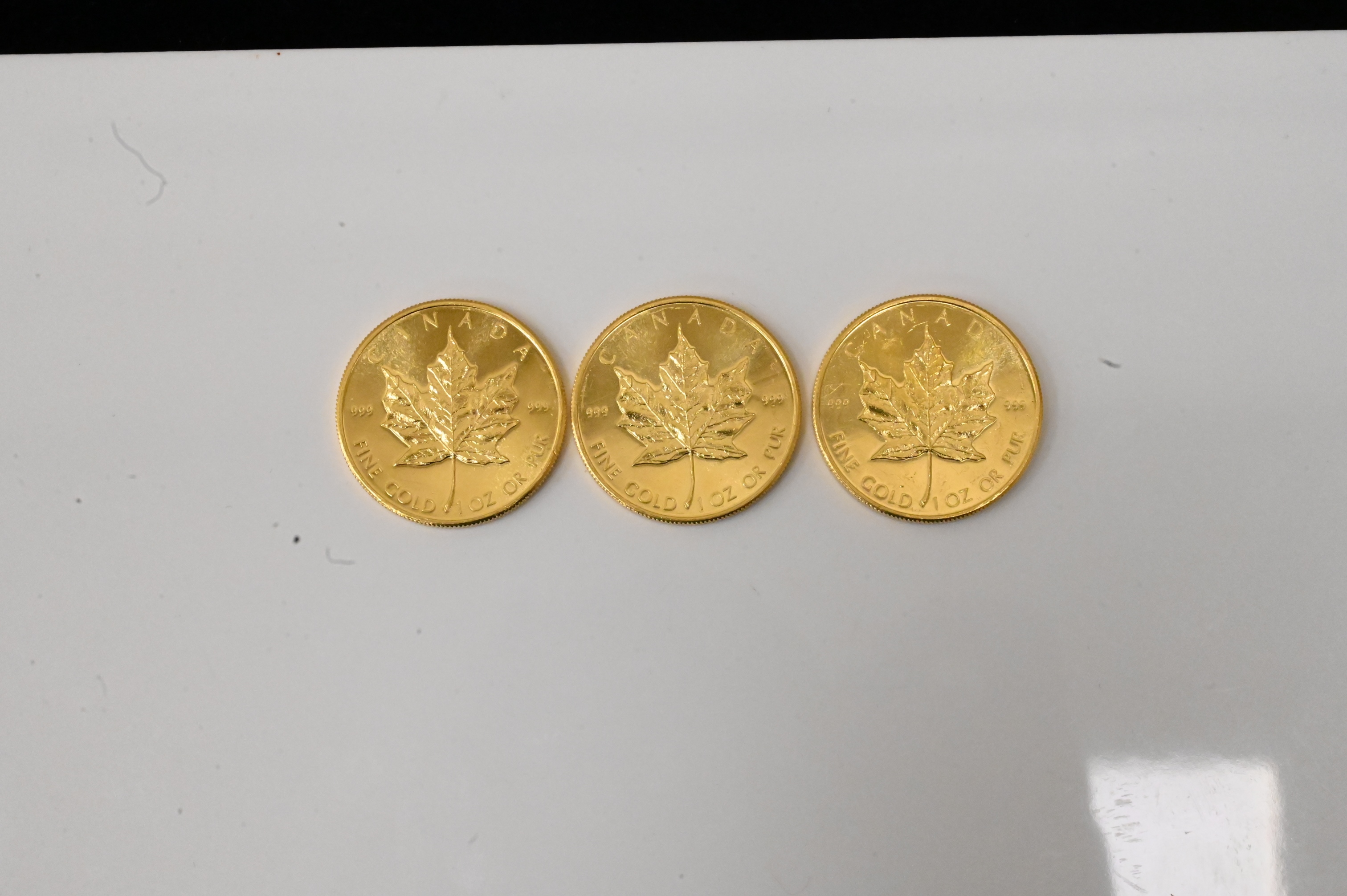 Lot 255: Three 1979 Canadian One Ounce Fine Gold $50 Maple Leafs