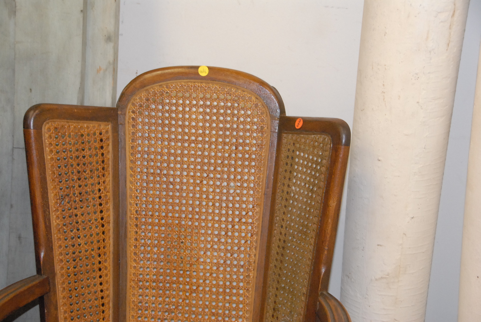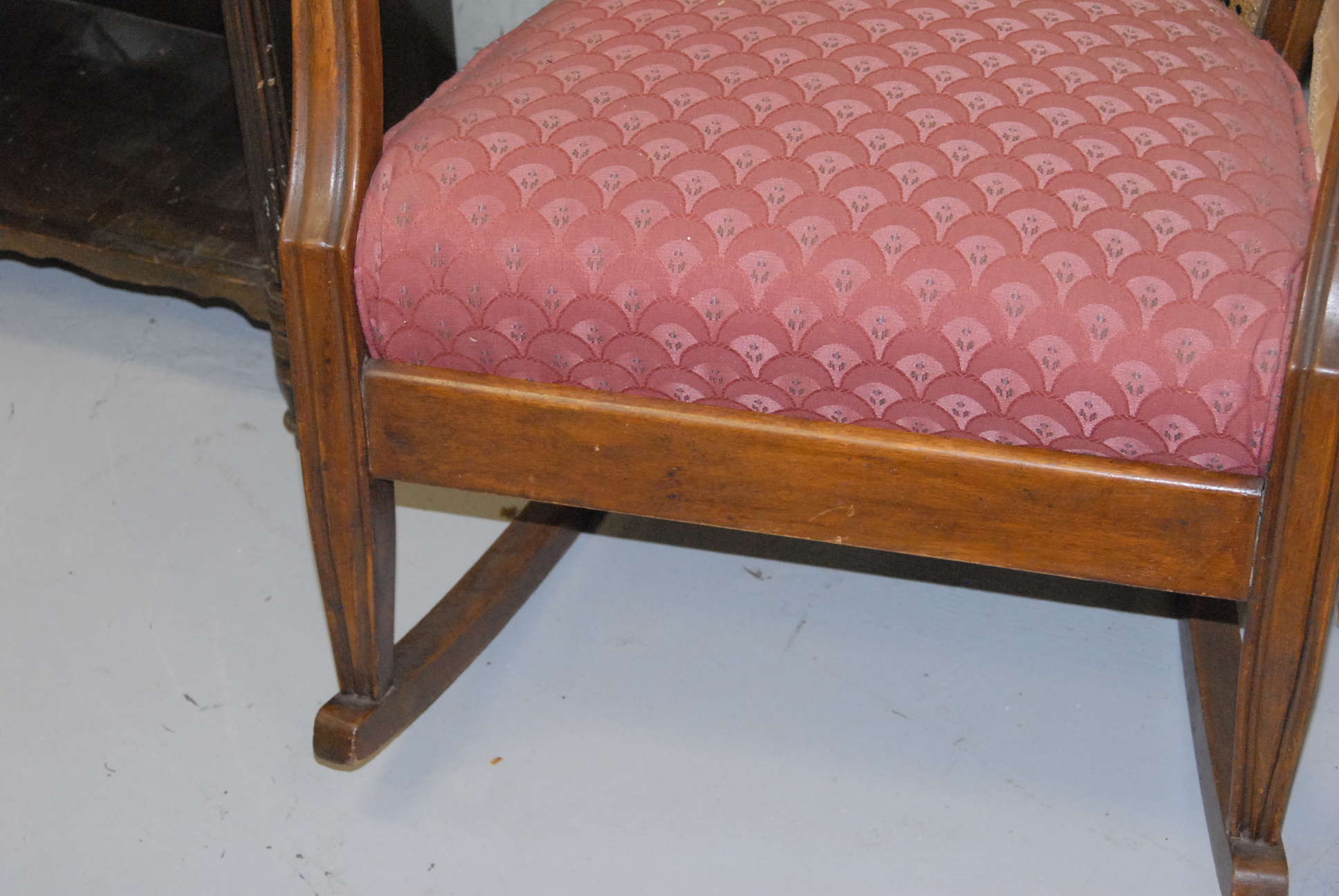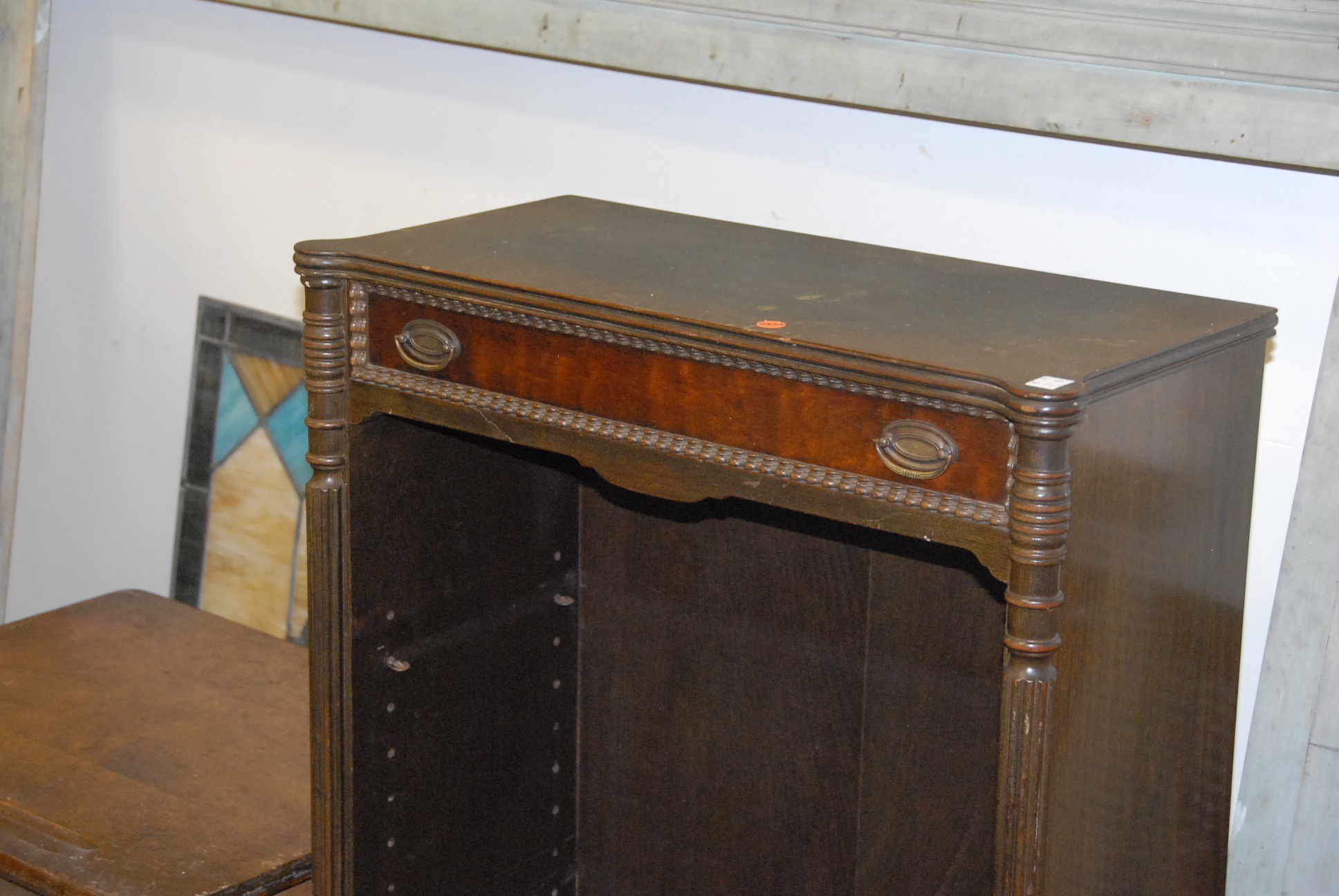 Three piece lot to include a mahogany bookcase, a rocker, and a school desk.