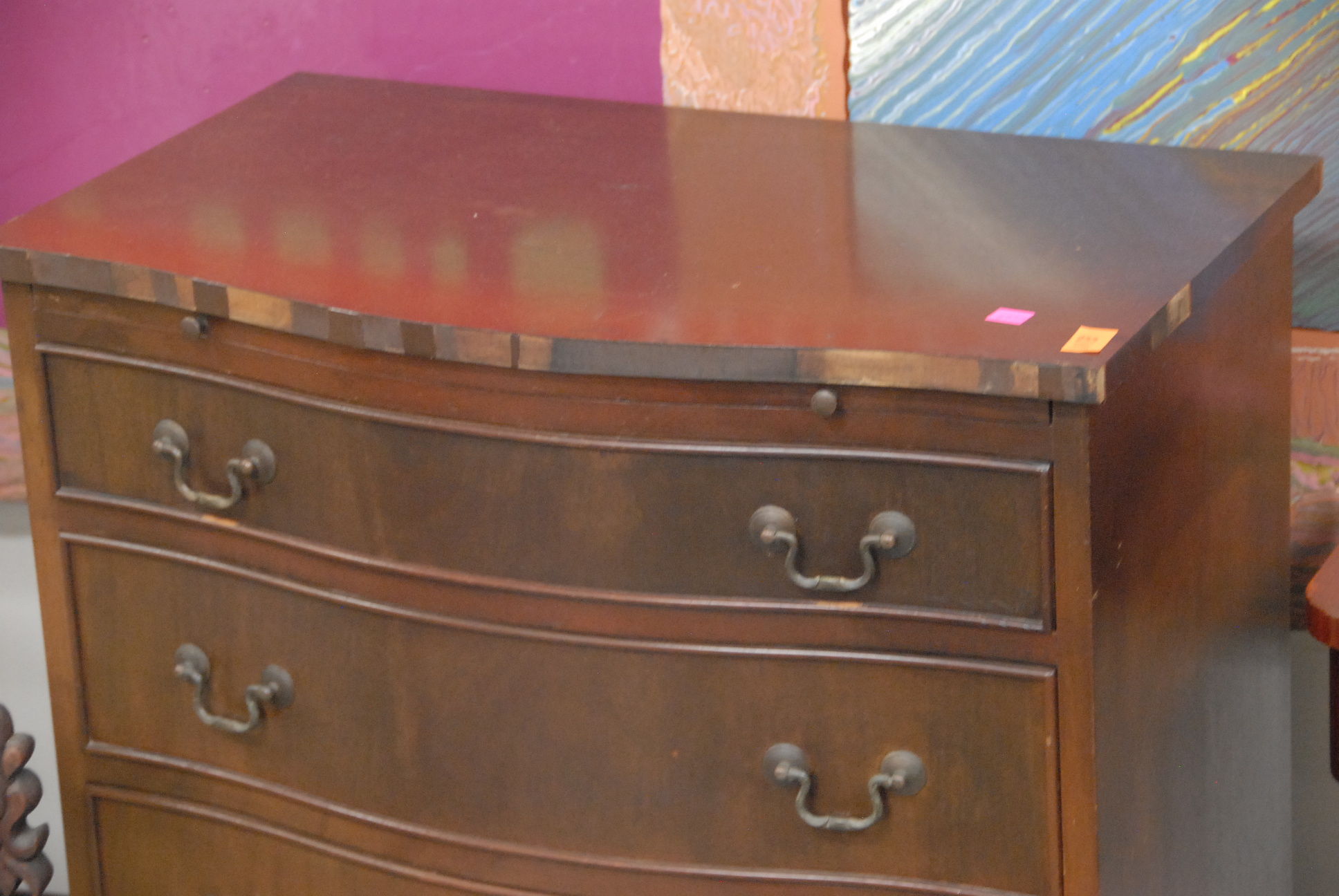 Two piece lot to include mahogany sewing table and mahogany small four drawer chest with slide veneer damage to chest.