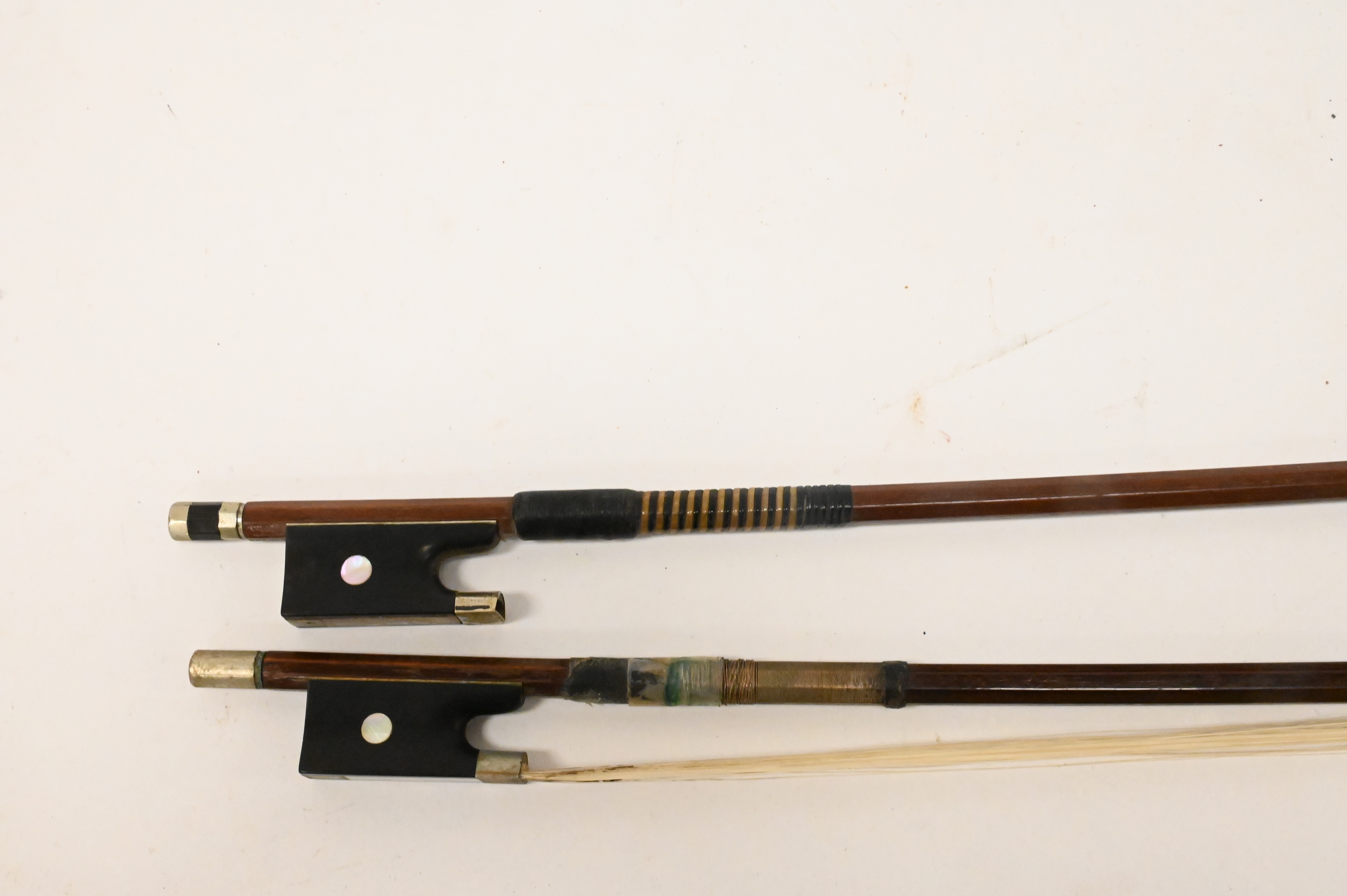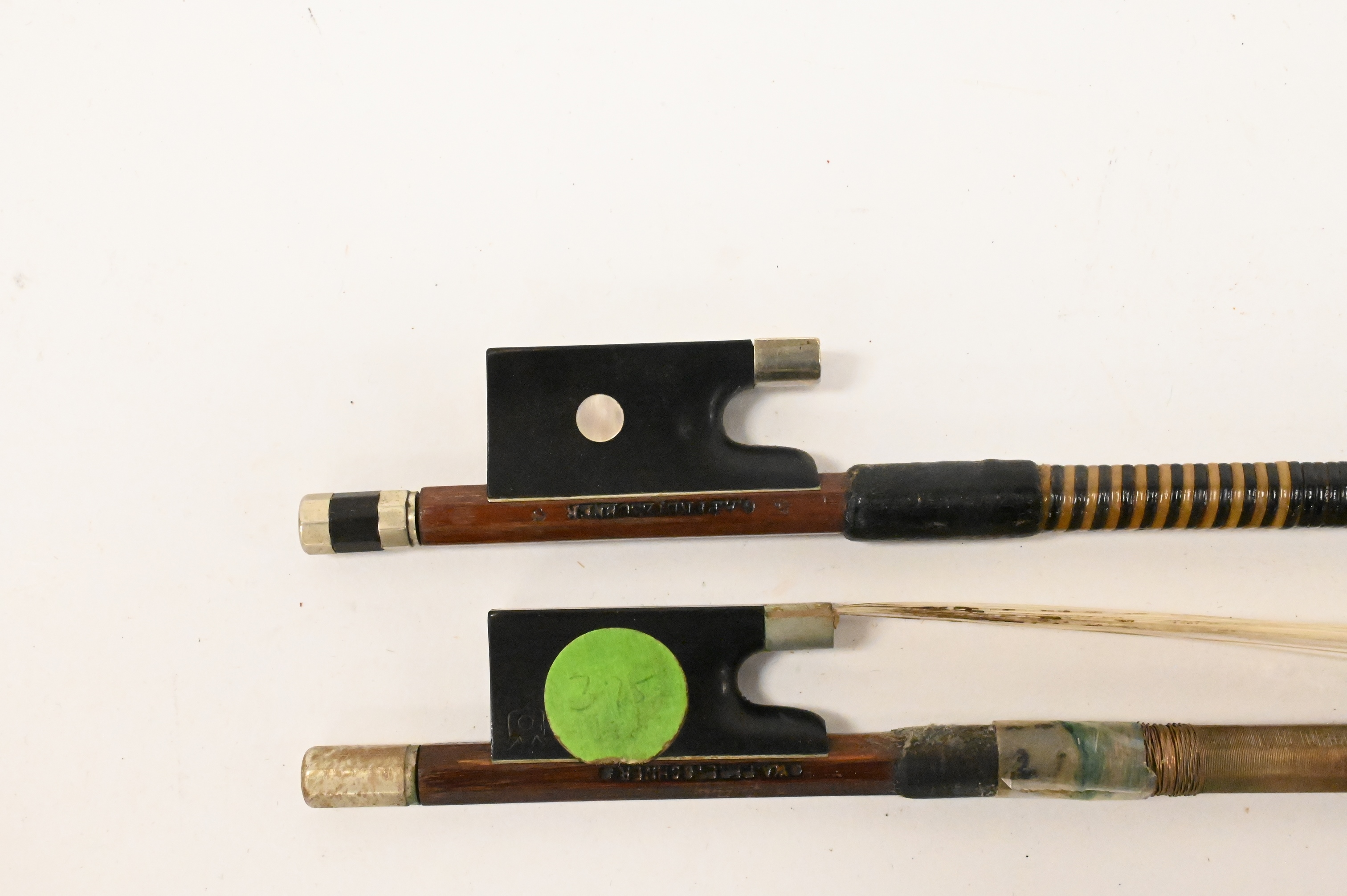 Two Pfretzcher Violin Bows, one marked “W.A. Pfretzcher” and other “G.A. Pfretzcher, Provenance: Estate of Donald K. Huber