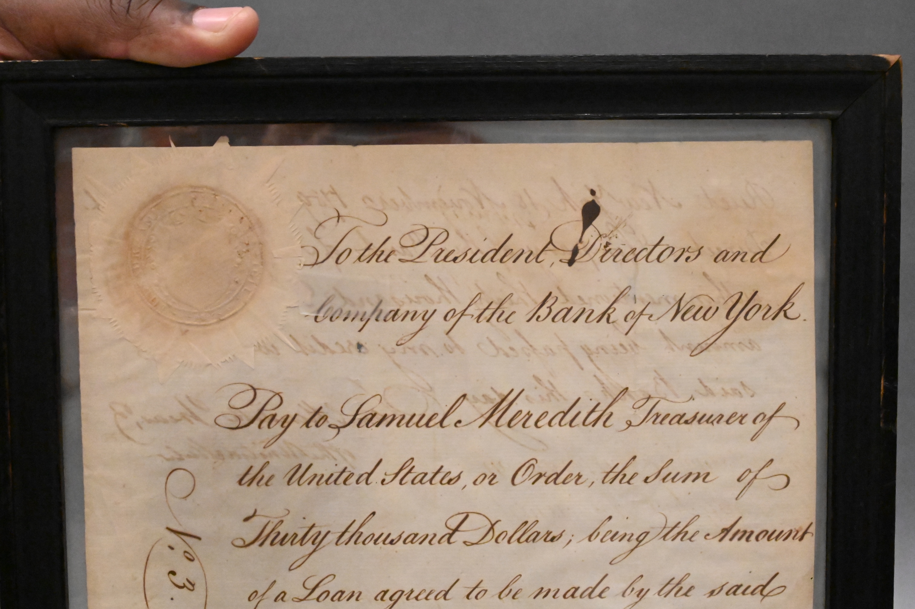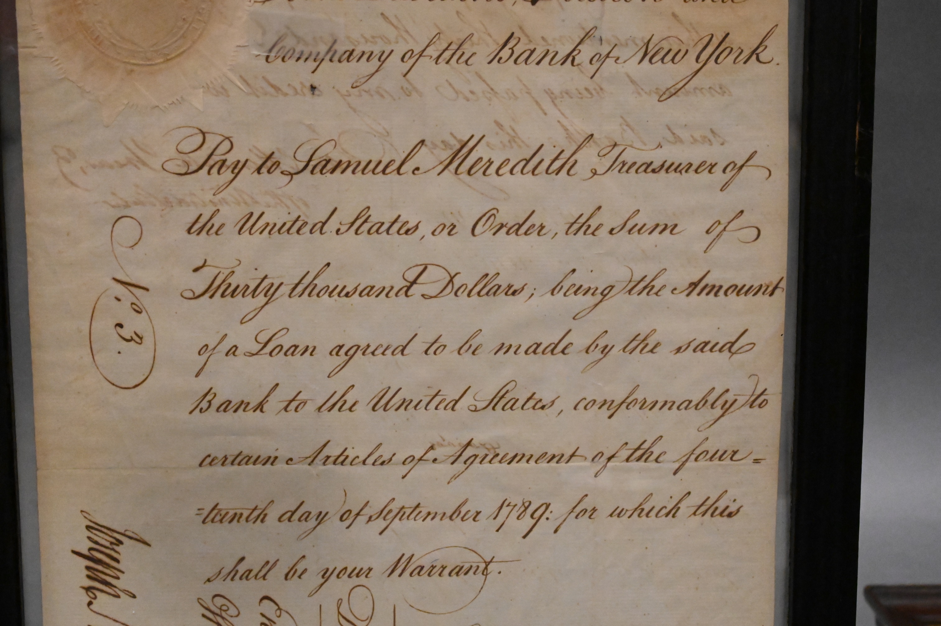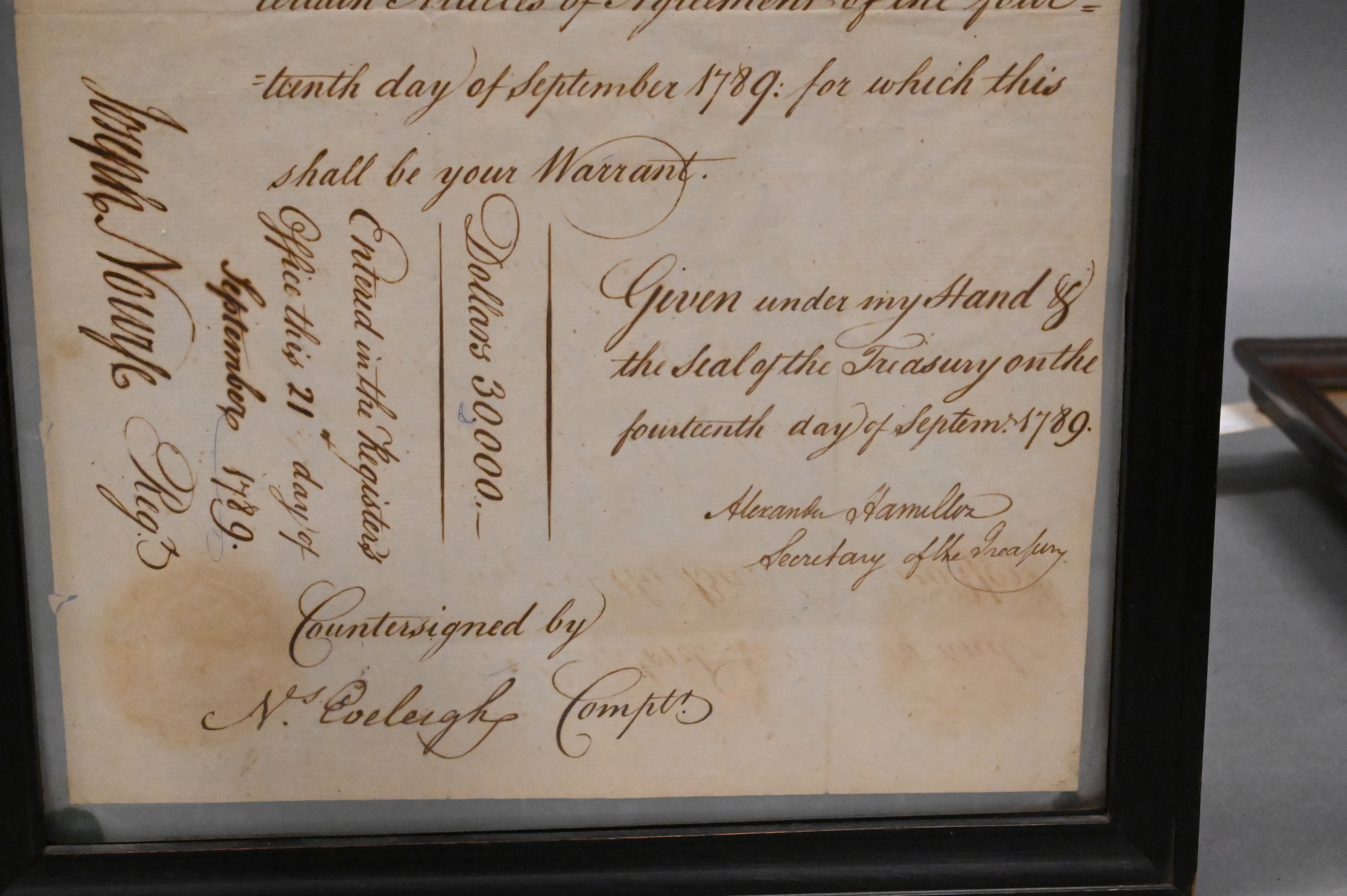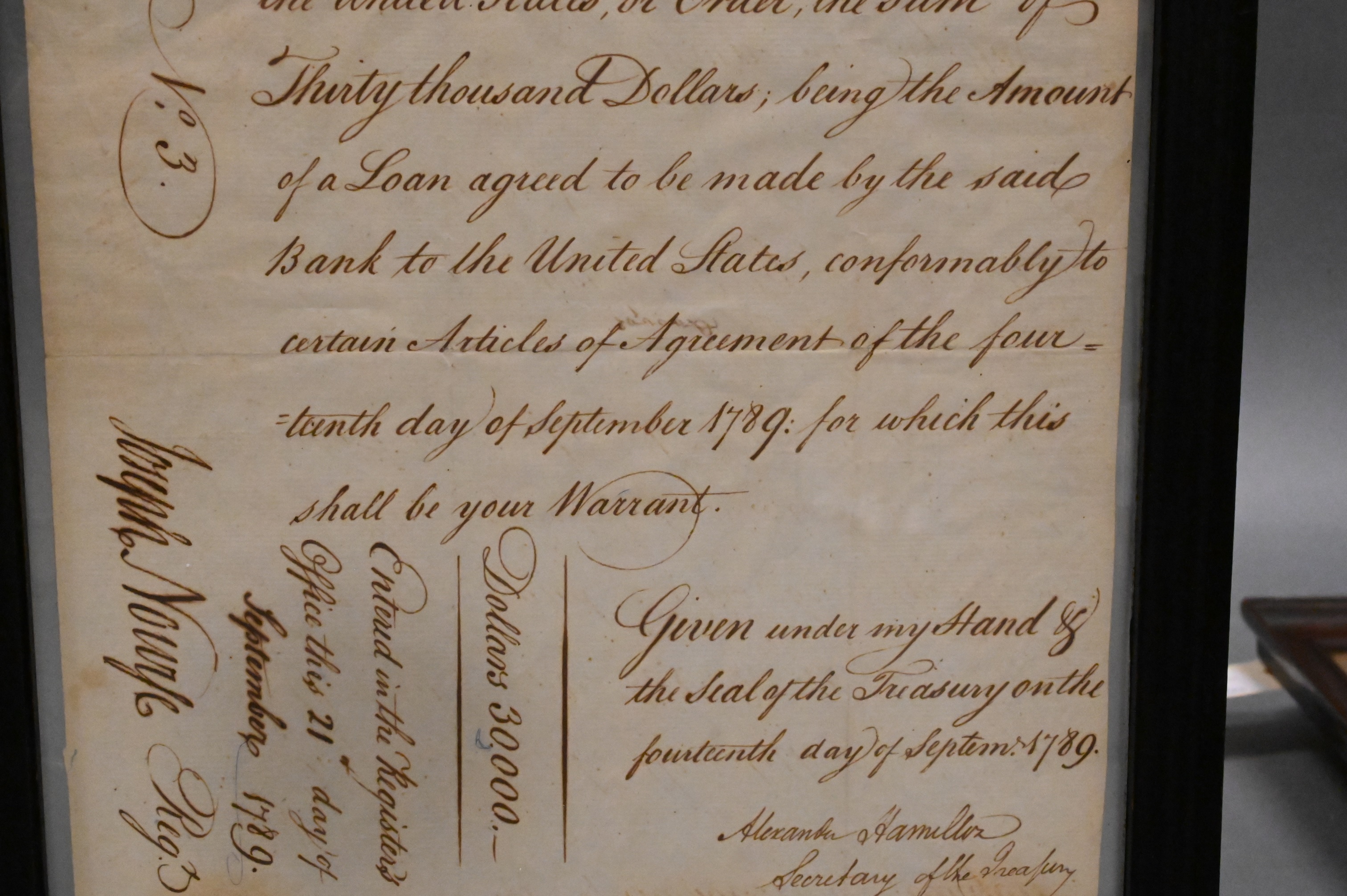 Requesting the loan sum of $30,000 to the United States, signed on September 14, 1789 “Alexander Hamilton Secretary” upper left